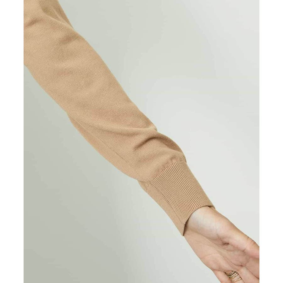 レーヨン素材にストレッチ性のあるポリエステルを混紡した、細番手のきれいめ素材。なめらかで肌触りが良く、肌寒い時期からロングシーズン快適に着用可能。上品な表面感と発色の良さが魅力で、コーディネートに映える美しいカラーをお楽しみいただけます。
