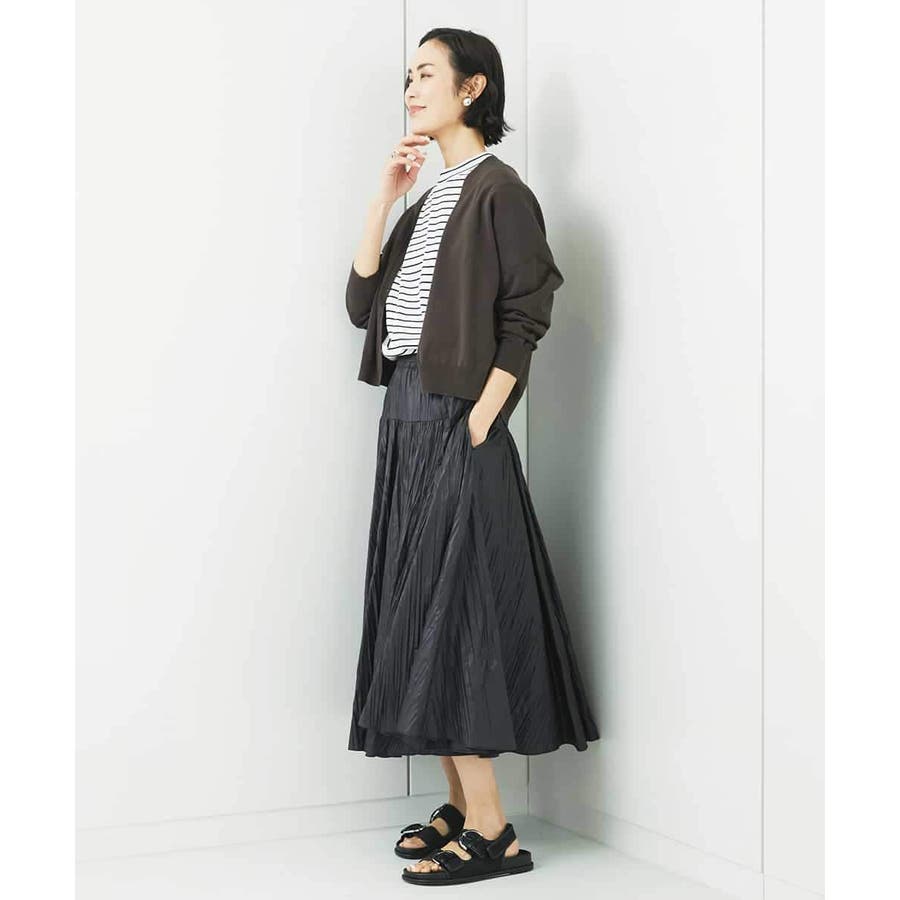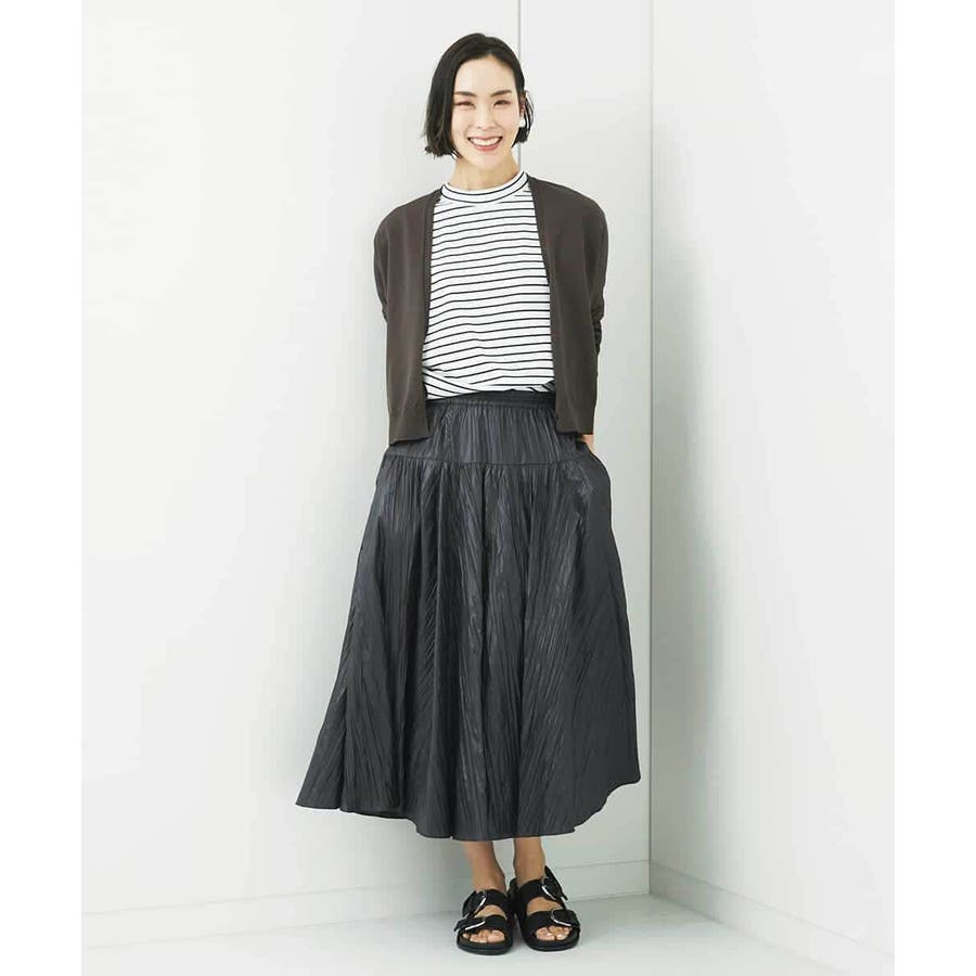 ワンピースやフレアスカートに合わせてきれいめスタイルに。リラクシーなワイドパンツと合わせたこなれ感のあるスタイルもおすすめ。