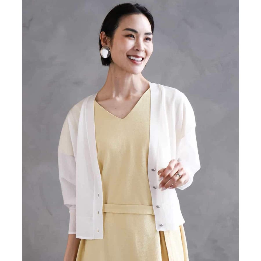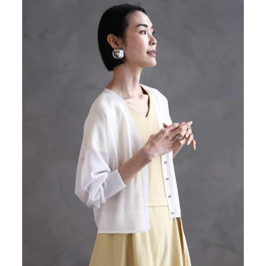 やや短めの着丈で、ワンピースやスカートなどボリュームのあるボトムスと好相性。夏場の日よけやエアコン対策にも持っておきたいアイテムです。