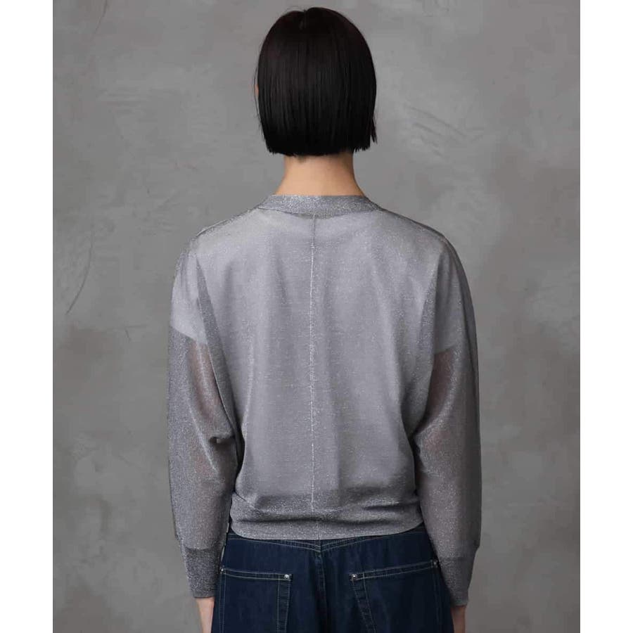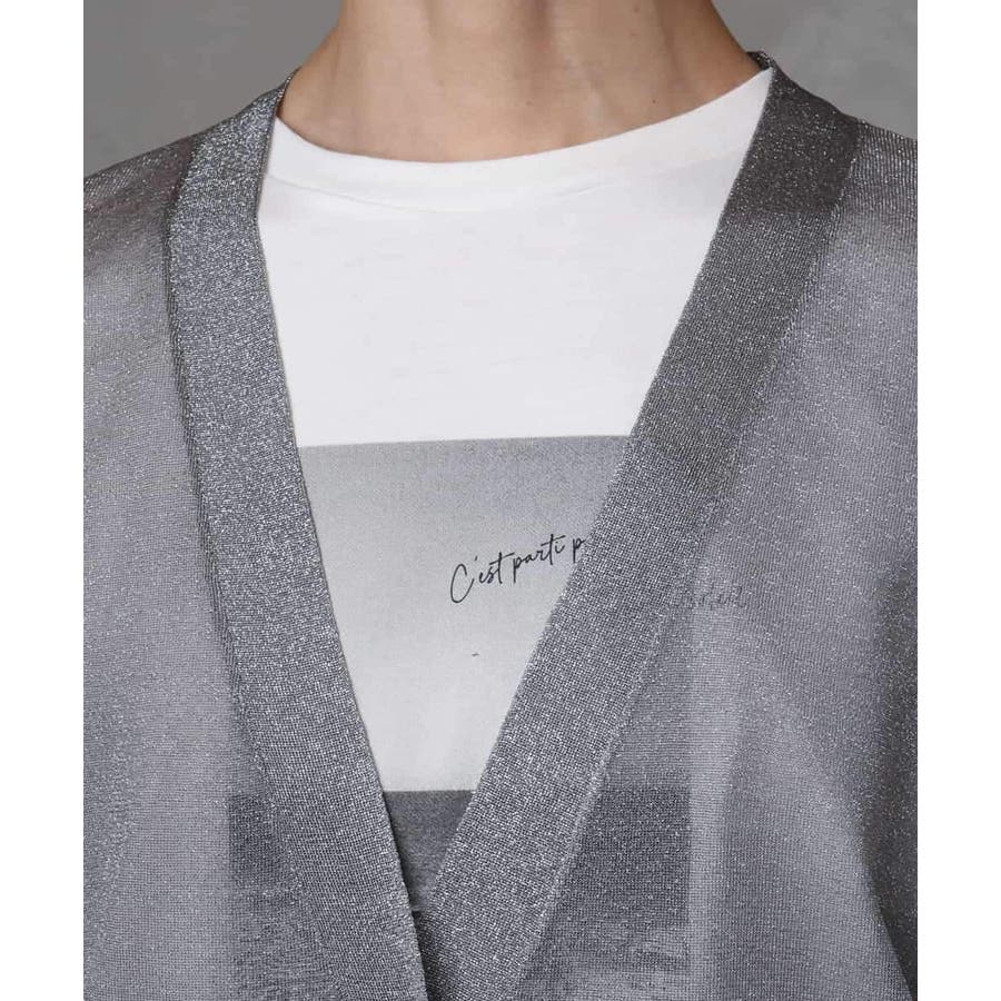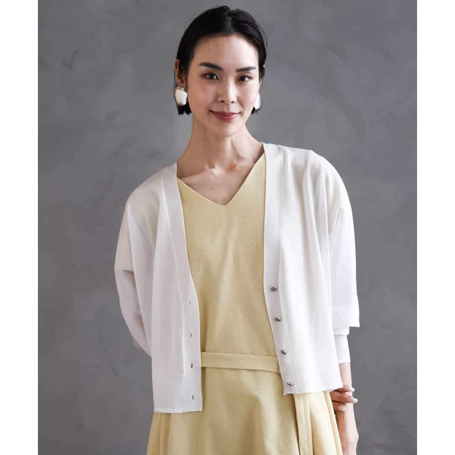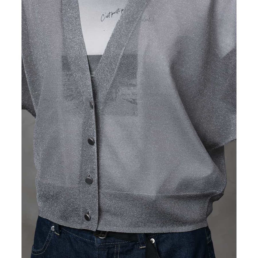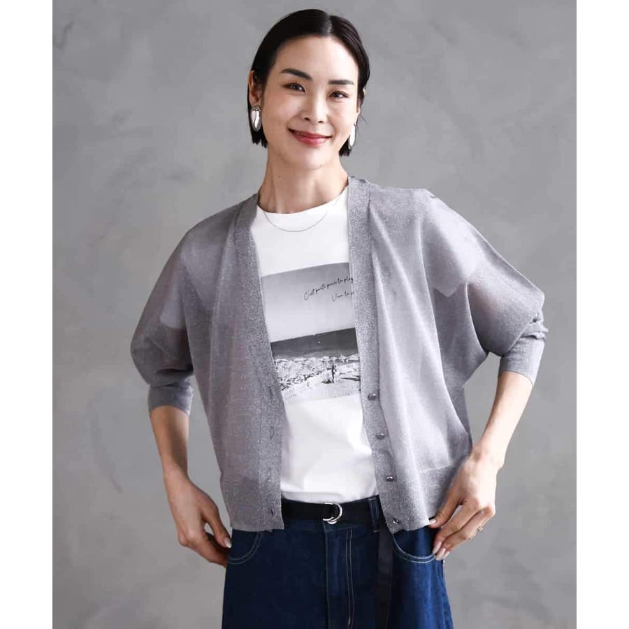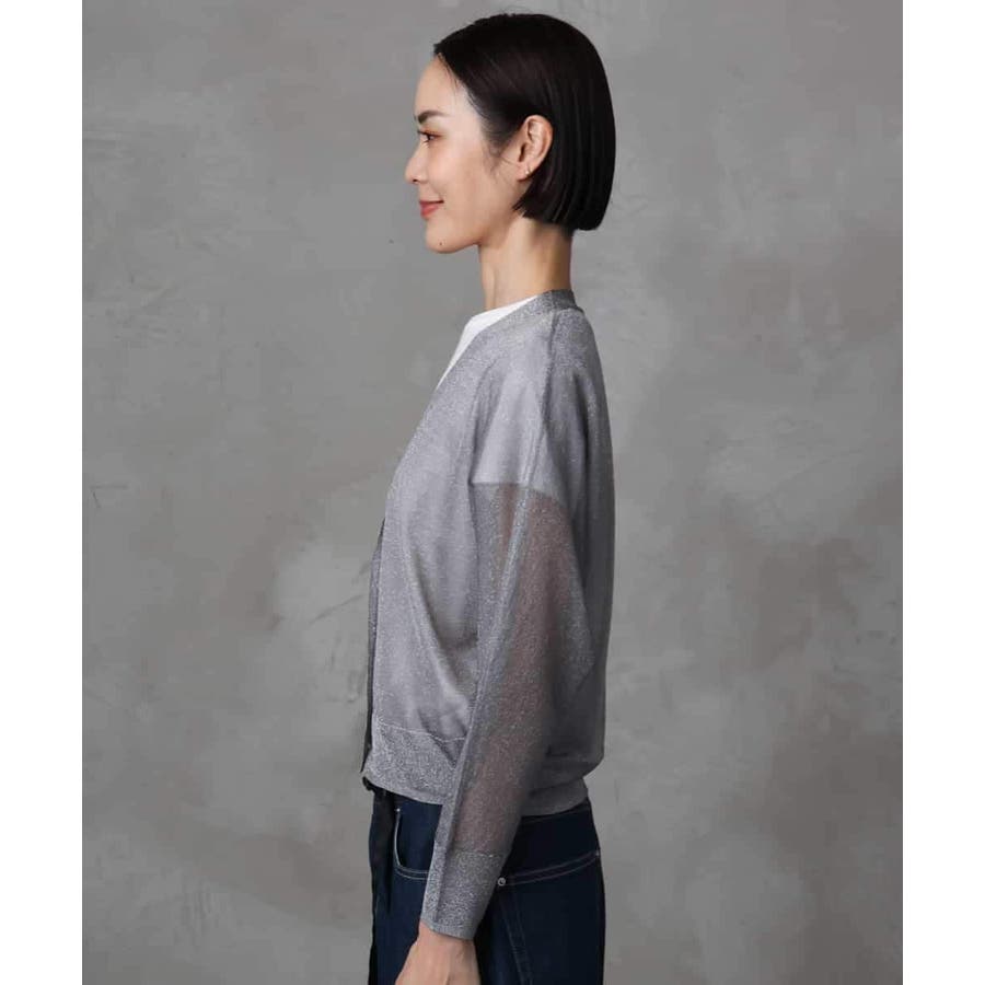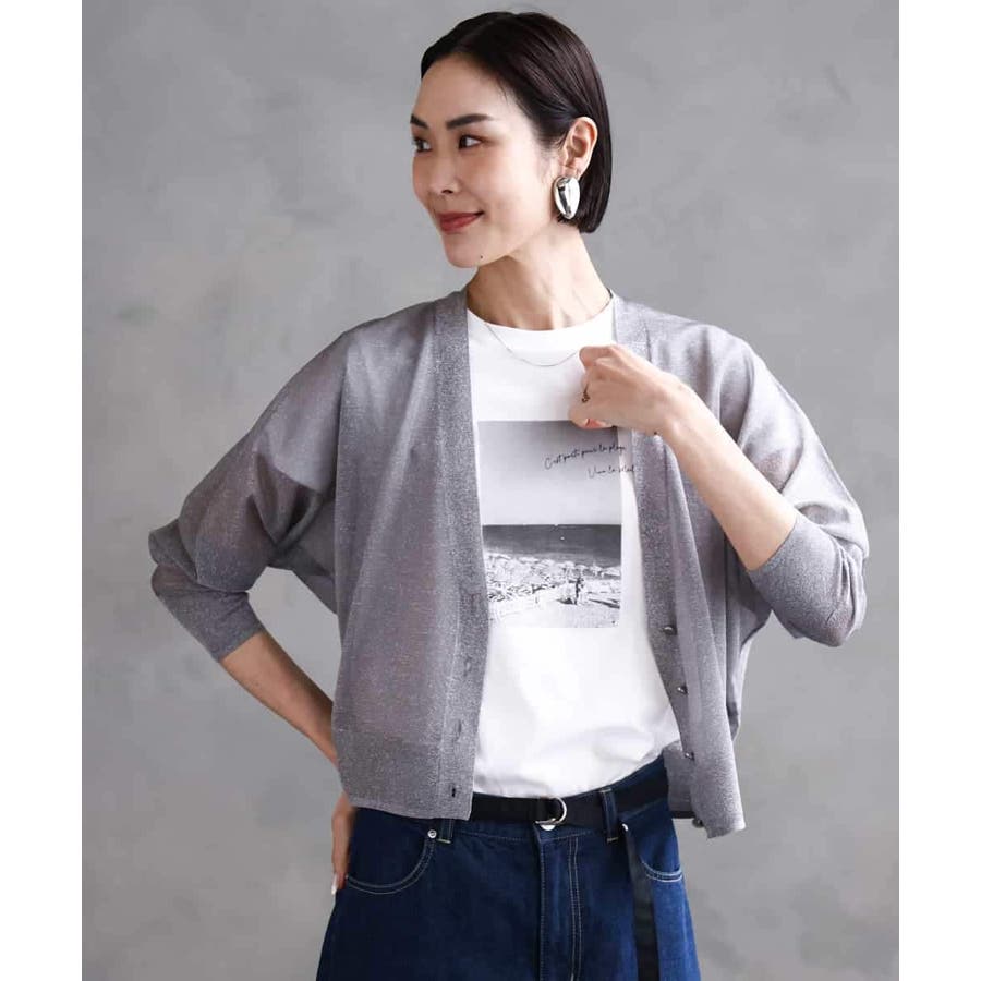 ラメのきらめきが着こなしのアクセントになってくれる、クロップド丈のカーディガンです。ボタンを止めてプルオーバー的にも、ワンピースなどにボレロのようにも羽織っていただけます。シワになりにくく、コンパクトなので、夏場の冷房対策に手持ちしていただくのにも便利です。40サイズは限定店舗展開です。