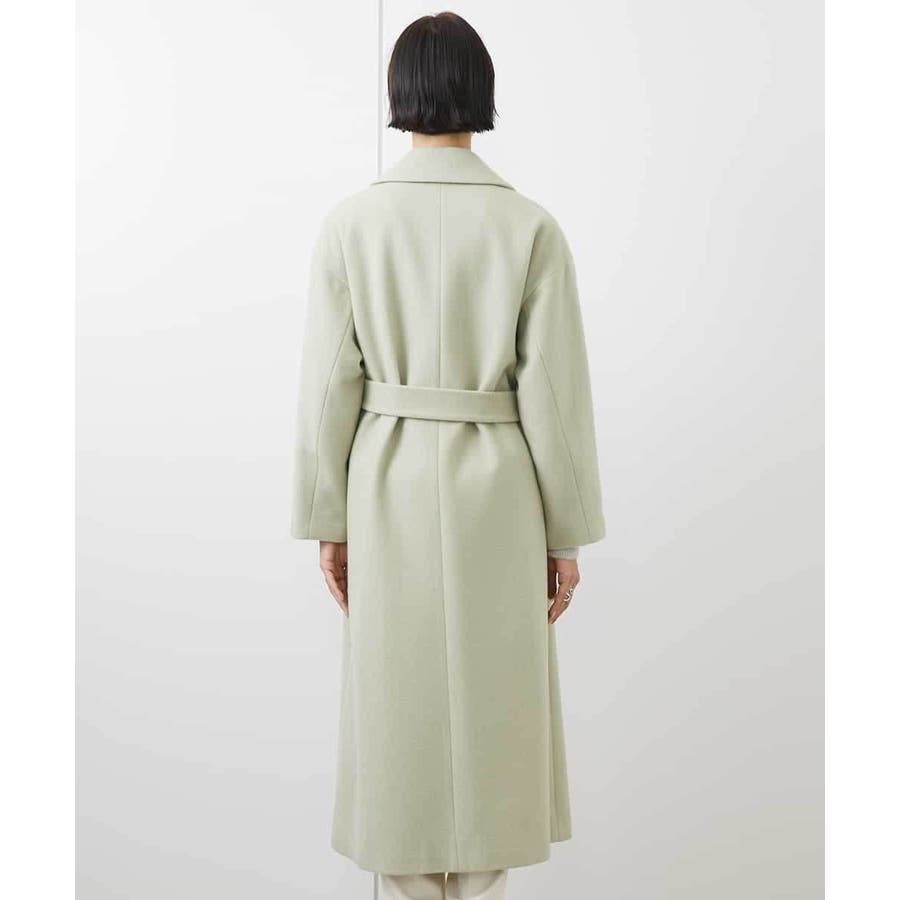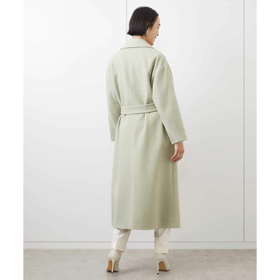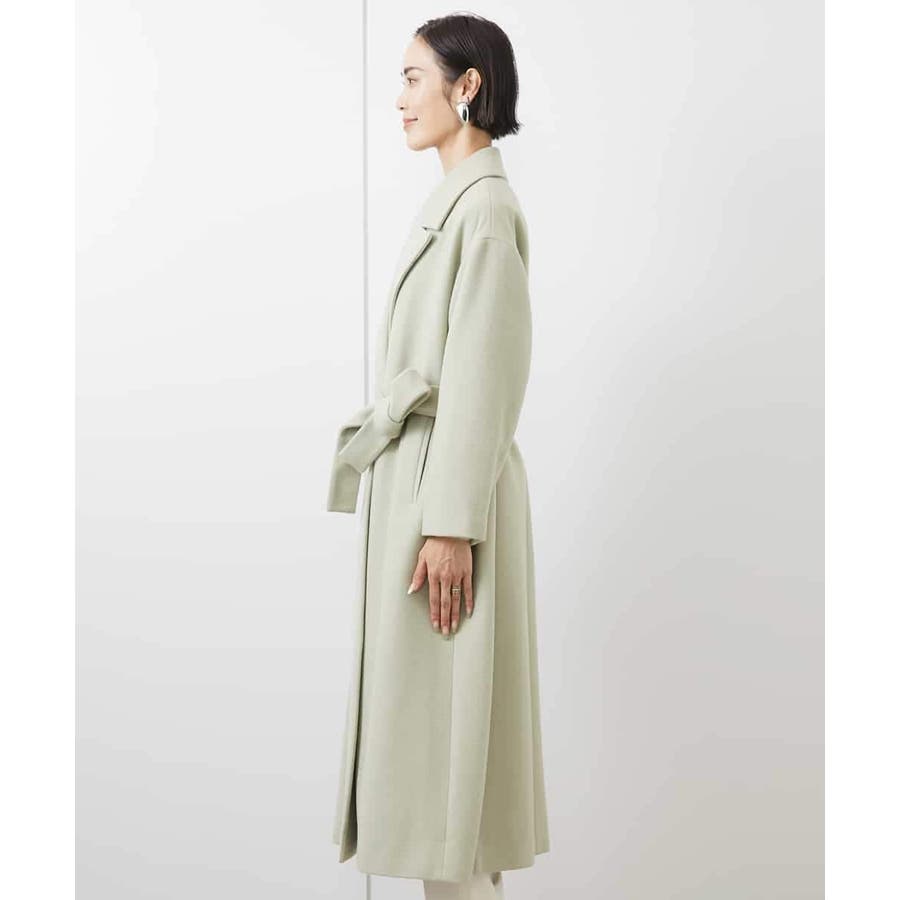 リラックスした雰囲気のシルエットが特徴的なロングチェスターコート。素材の特徴を活かして、すらっとした印象の仕上がりです。共布のベルトがセットになっており、ドレスコート風の着こなしも楽しめます。40サイズは限定店舗展開です。