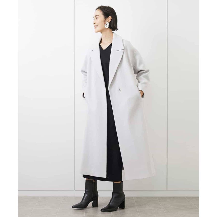 パンツスタイルでスタイリッシュに着こなしたり、スカートスタイルで上品にまとめたりと幅広く着こなしを楽しめます。同素材スタンドカラーコート[FMUAV50470]・Pコート[FMUAV52490]もご用意いたしております。