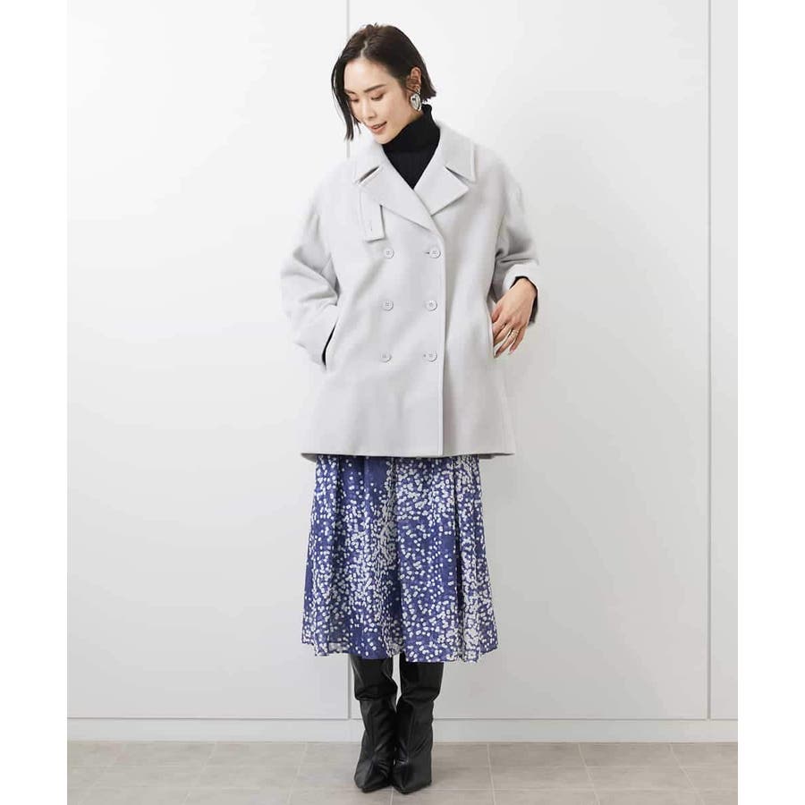 オーバーながらもきちんと感をキープしたコートはボリューム感のあるスカートとマッチ。長すぎない着丈はボトムスとのバランスも取りやすく、着まわししやすいコートです。同素材スタンドカラーコート[FMUAV50470]・ロングコート[FMUAA51590]もご用意いたしております。