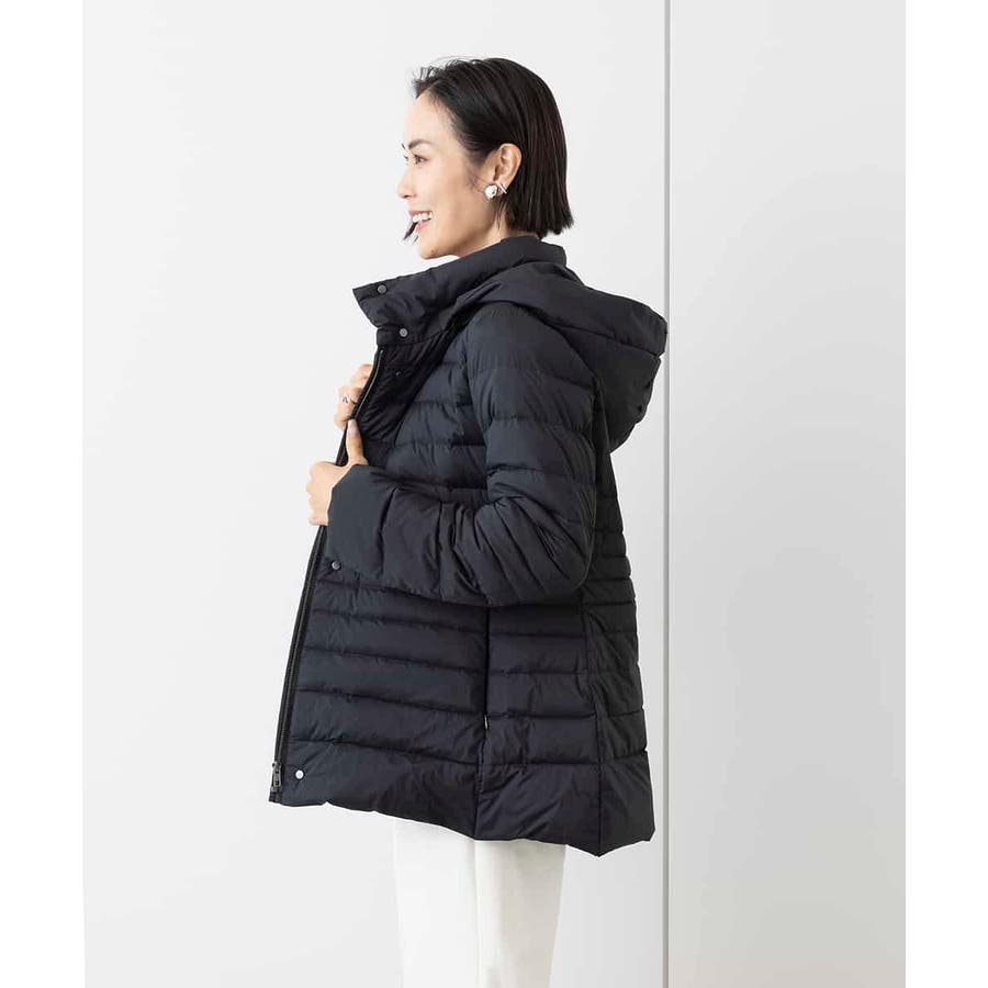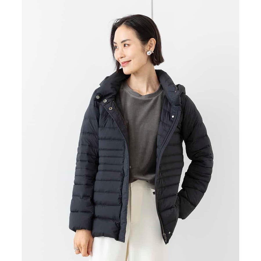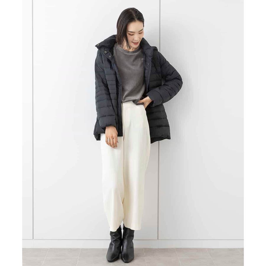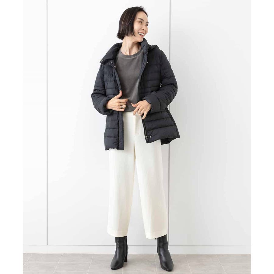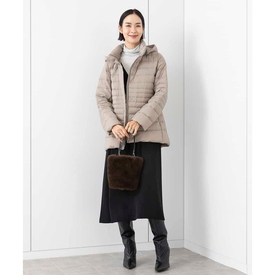 すっきりとしたシルエットのダウンジャケットはスカートスタイルとマッチ。腰回りをカバーしてくれる着丈でバランスが取りやすいです。同型ミドル丈[FMVAA41610]もご用意いたしております。
