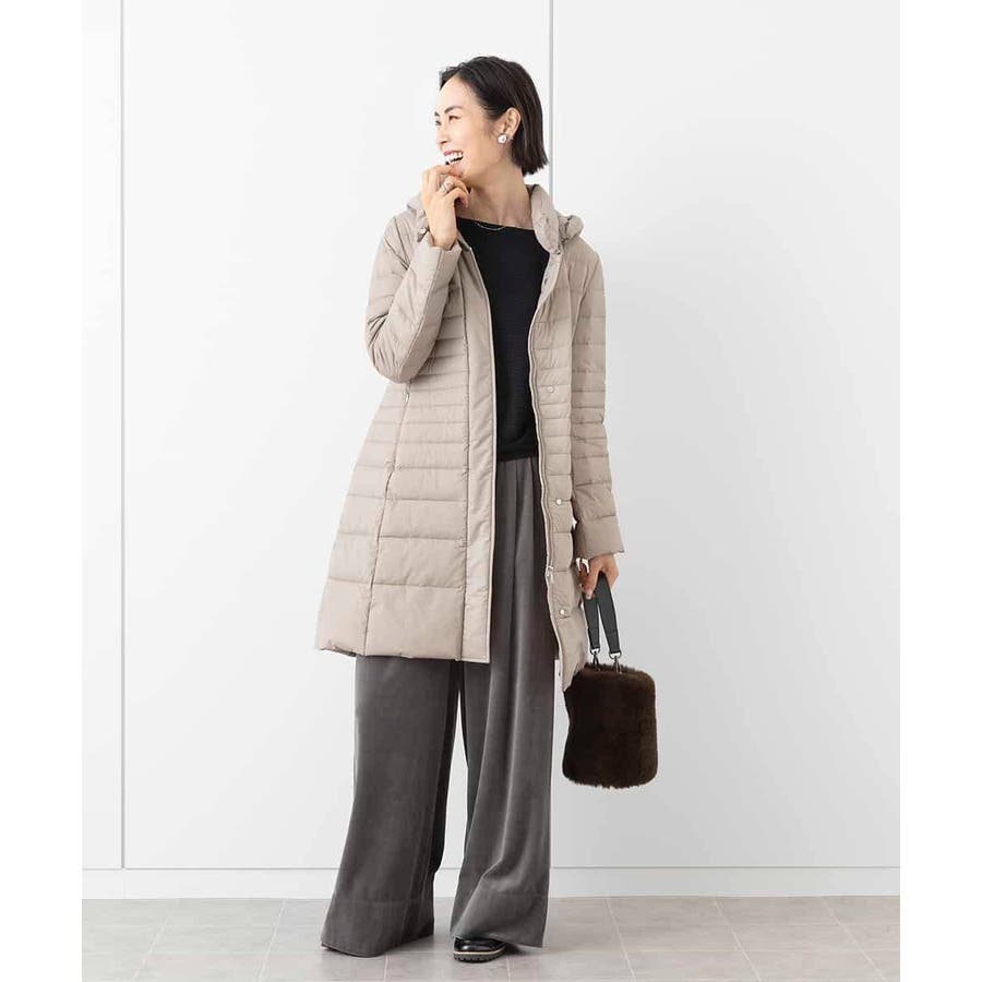 ダウンの着ぶくれ感が無く、さらに、ウェスト部分のピッチを細くしたことで着るだけでスタイルアップ効果ありです。