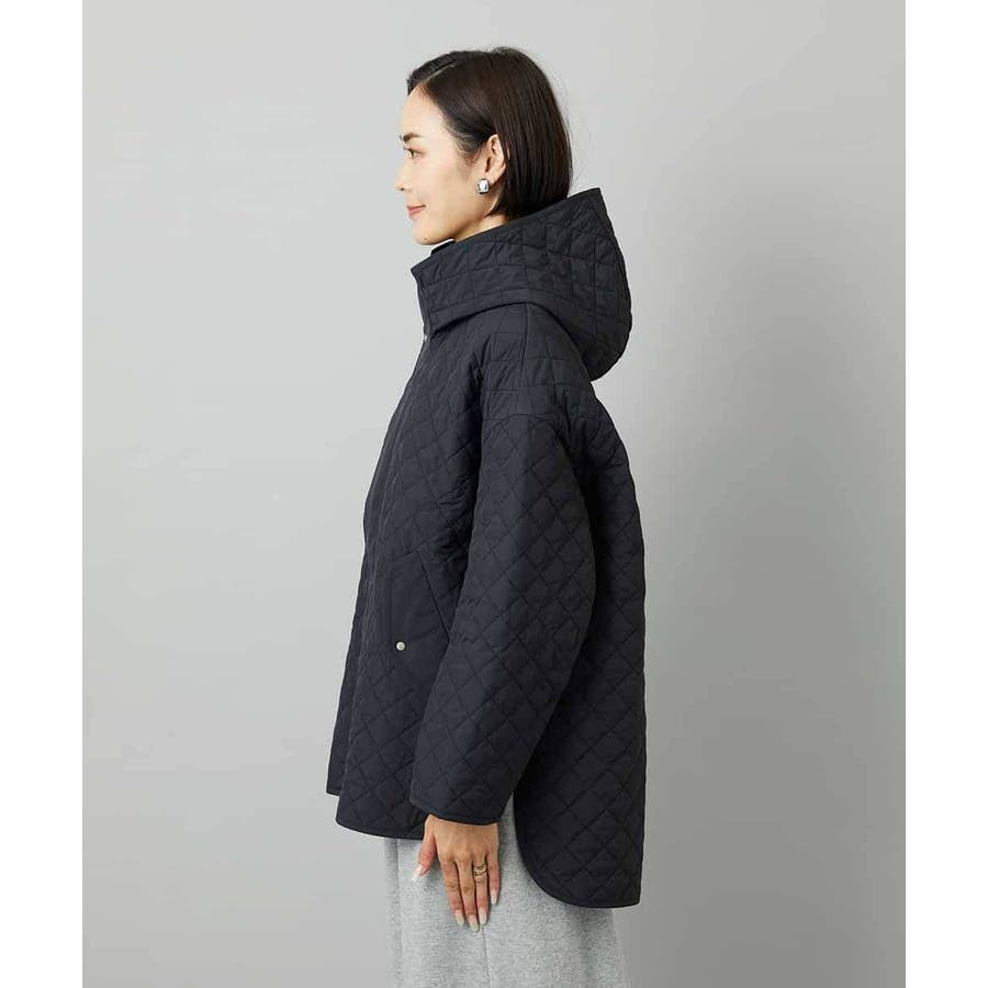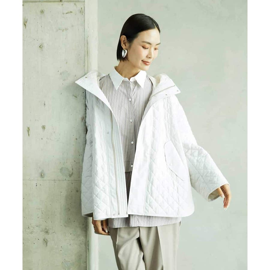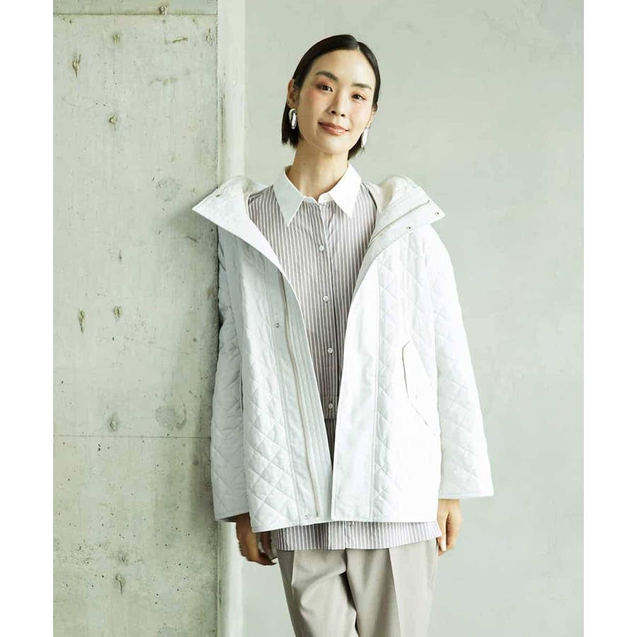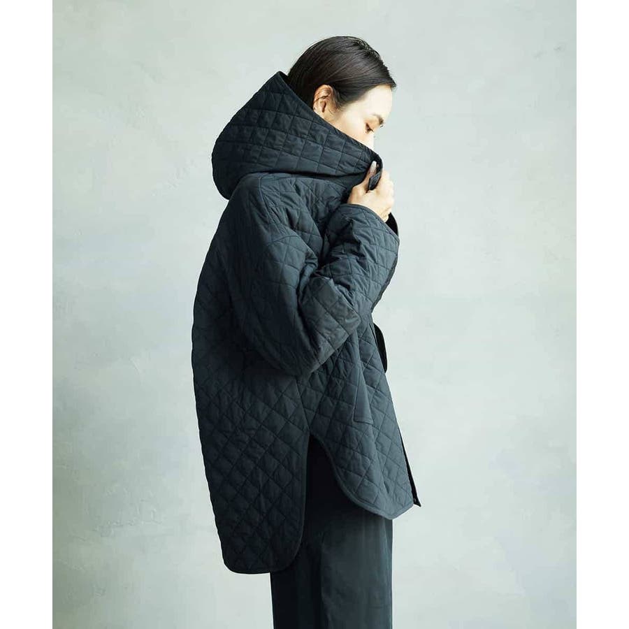 キルティング素材を使用したオーバーサイズのフードコート。小ぶりな立体フードや前後差のある丈がアクセントとなり、軽やかなコクーンシルエットで洗練された雰囲気に仕上げています。中に着るアイテムを選ばず、シルエットが美しく決まるのも魅力です。40サイズは限定店舗展開です。