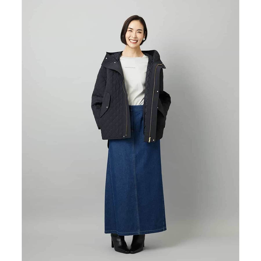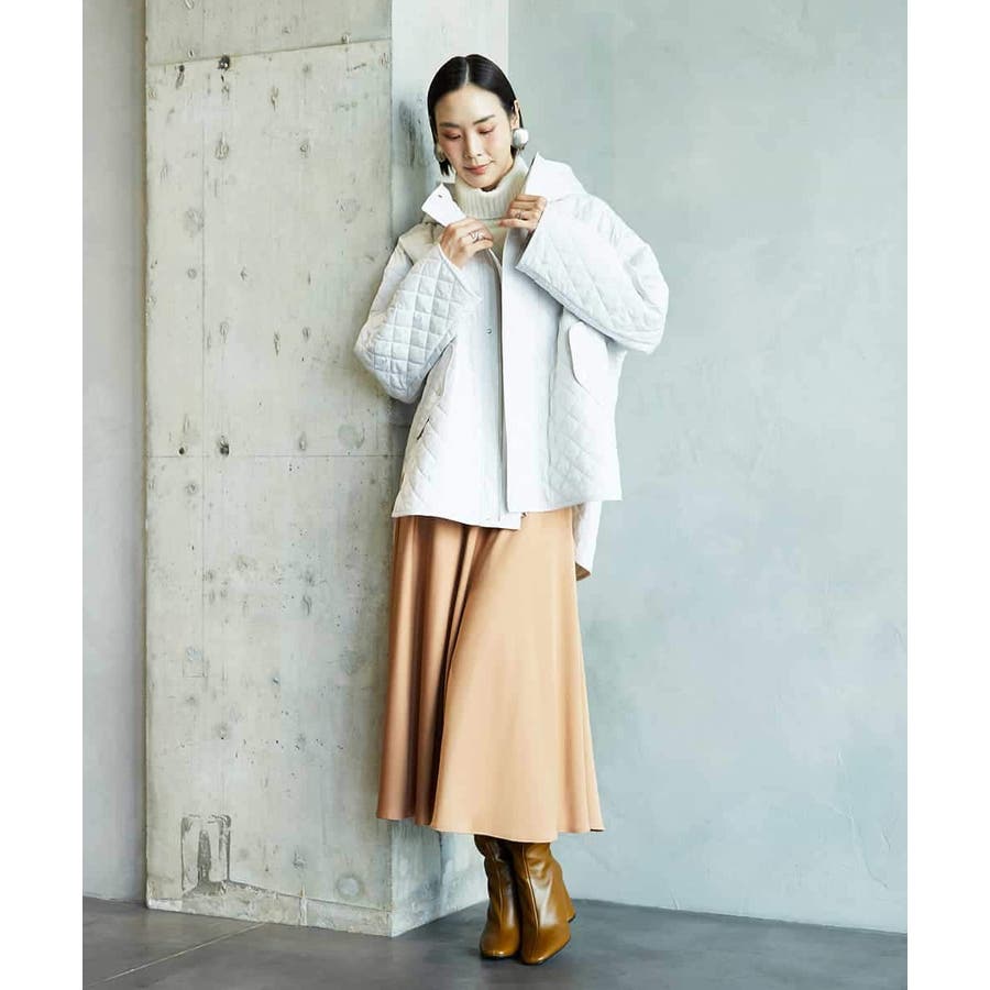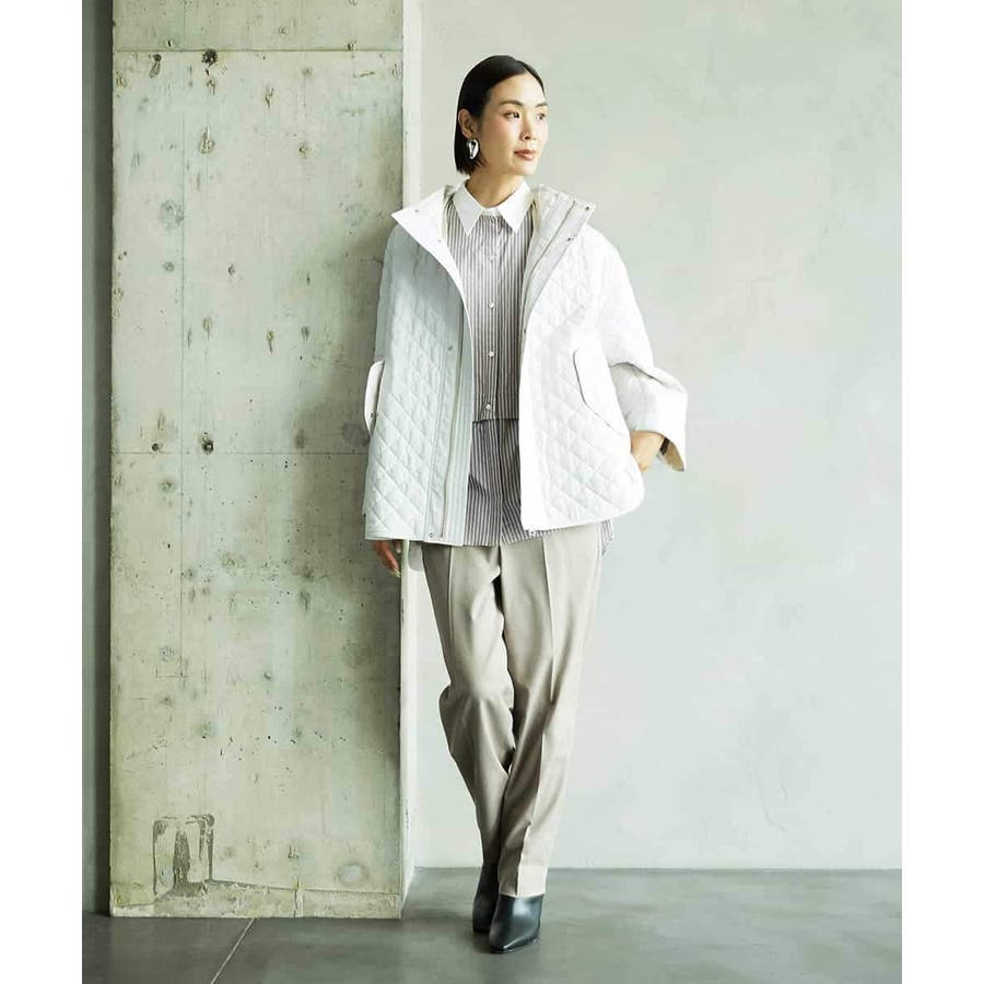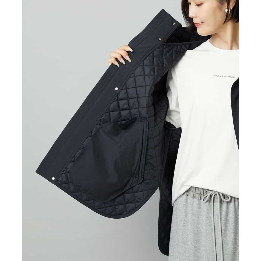 キルティング素材を使用したオーバーサイズのフードコート。小ぶりな立体フードや前後差のある丈がアクセントとなり、軽やかなコクーンシルエットで洗練された雰囲気に仕上げています。中に着るアイテムを選ばず、シルエットが美しく決まるのも魅力です。40サイズは限定店舗展開です。