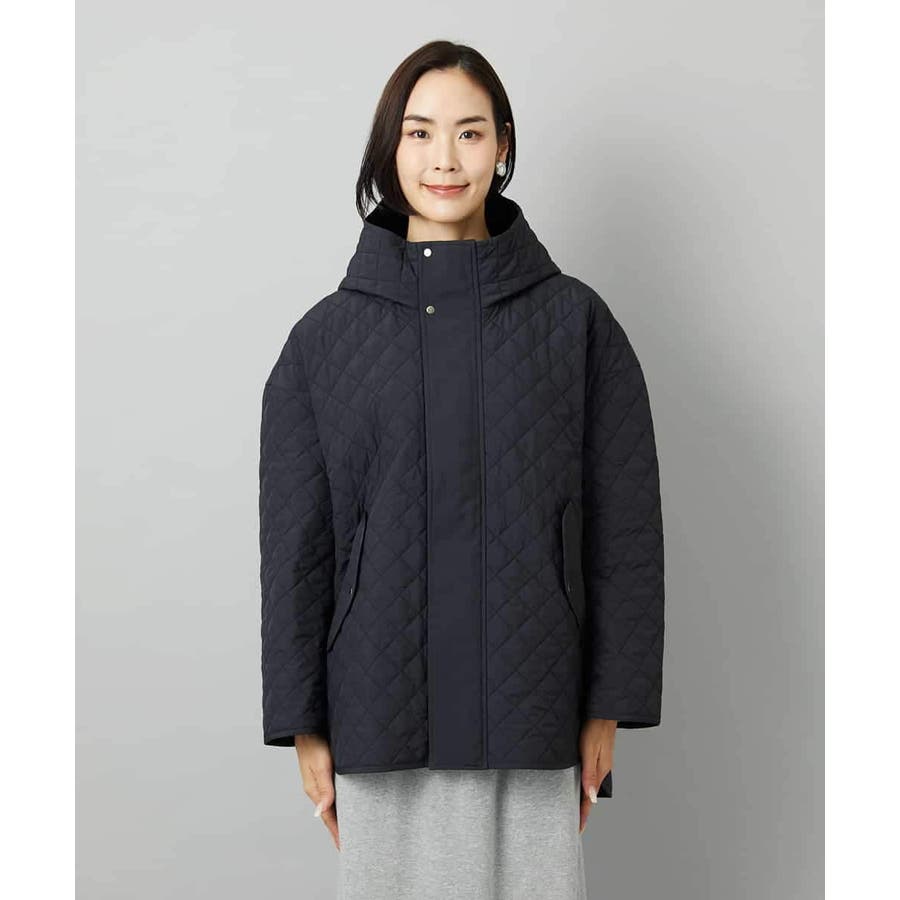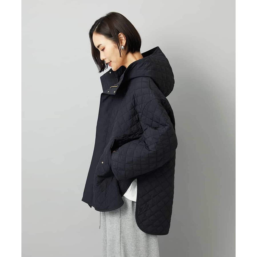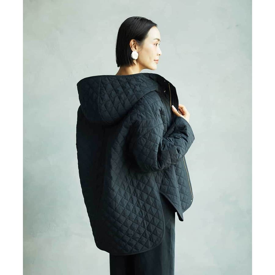 オーバーサイズフードキルティングコート