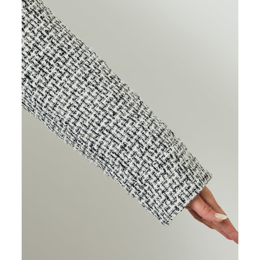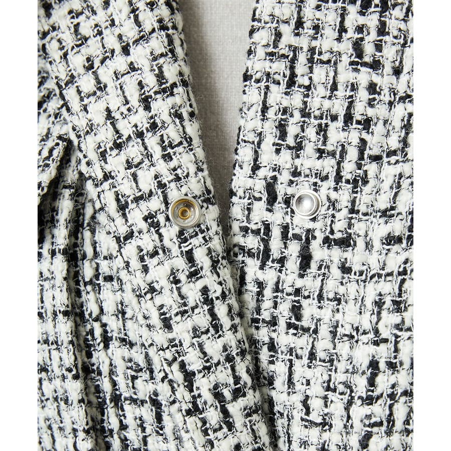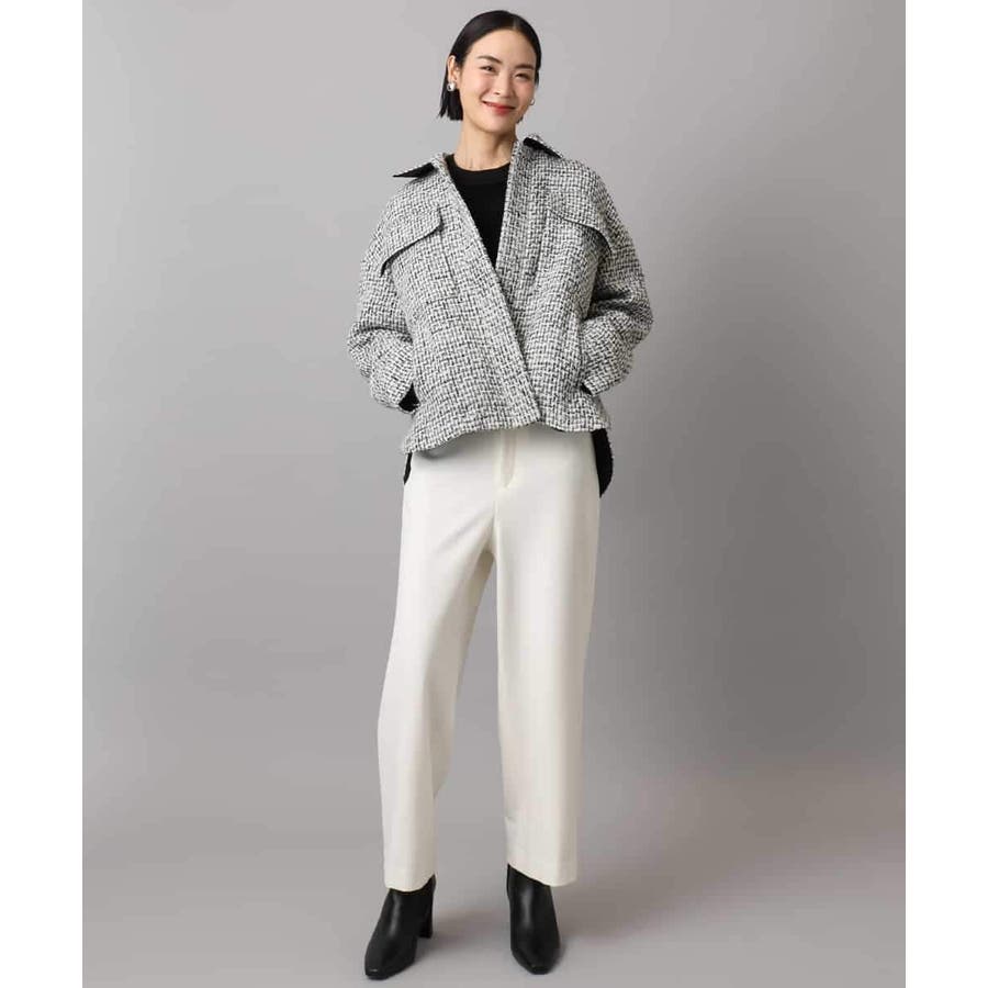 複数の異なる糸を組み合わせて織り上げたファンシーツイード素材を使用。中綿入りながらも膨らみを抑え、すっきりとしたシルエットに仕上げました。