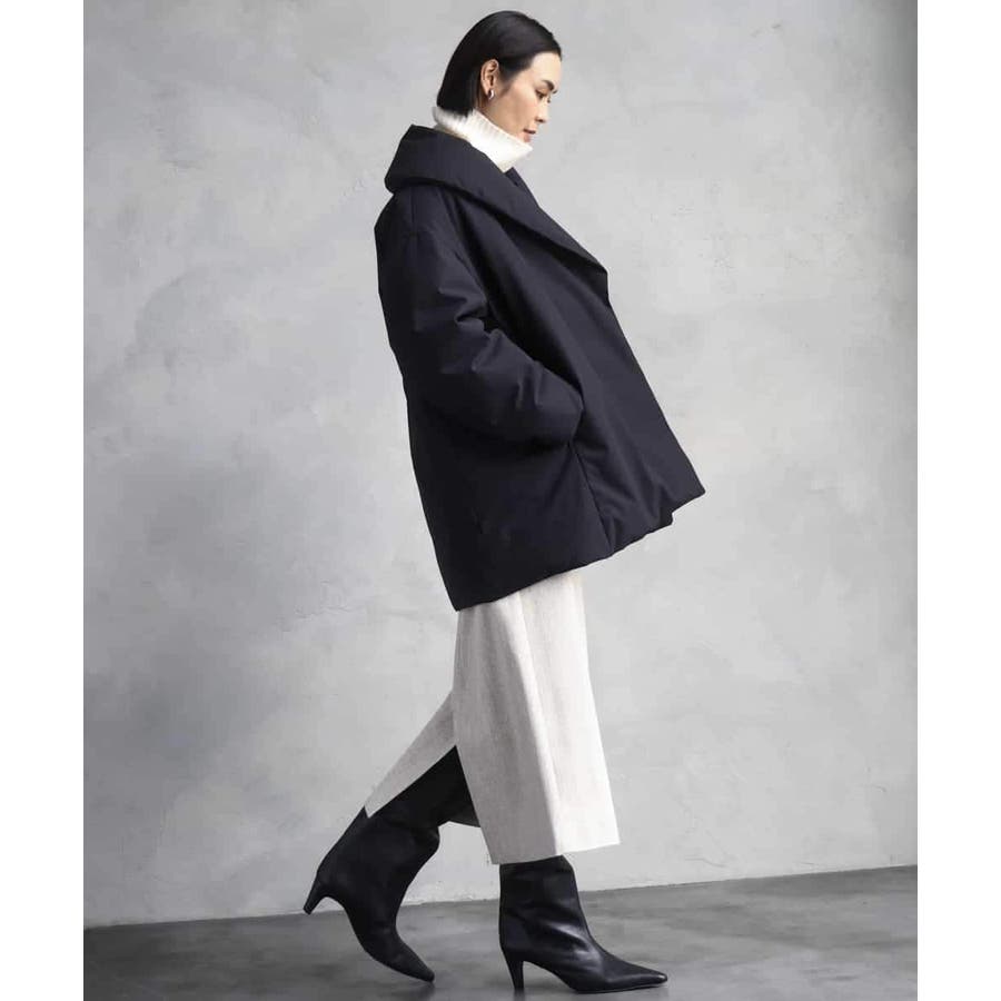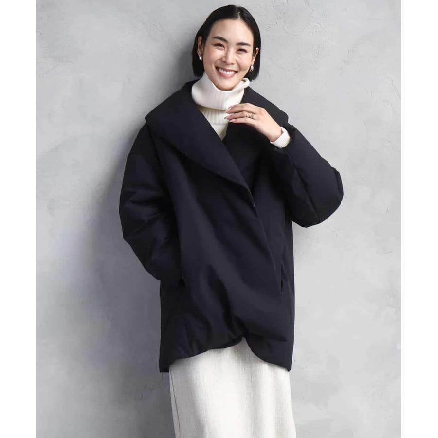 立体的なショールカラーが印象的なダウンコート。ヒップが隠れる着丈はスカートにもパンツにも合わせやすく、きれいめからカジュアルまで幅広く活躍します。デイリーにもお出かけにも頼れる一枚です。