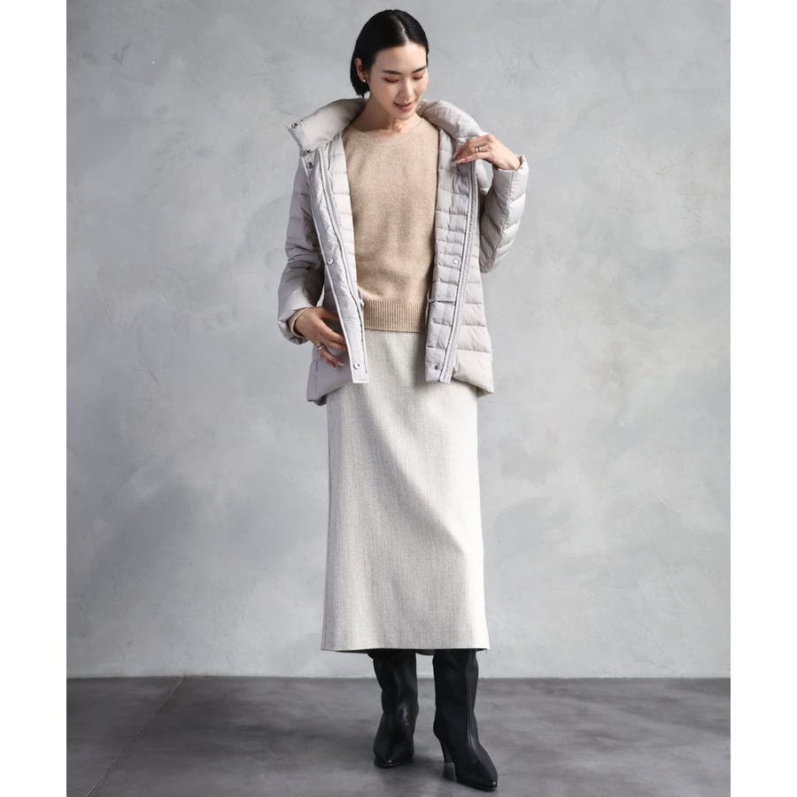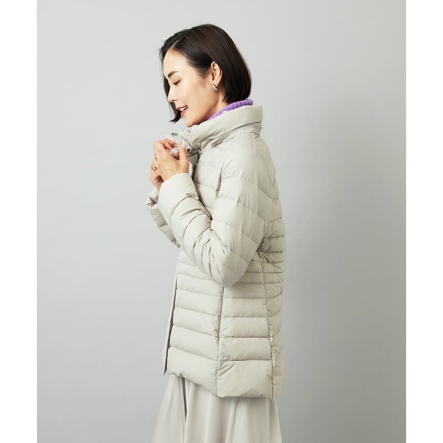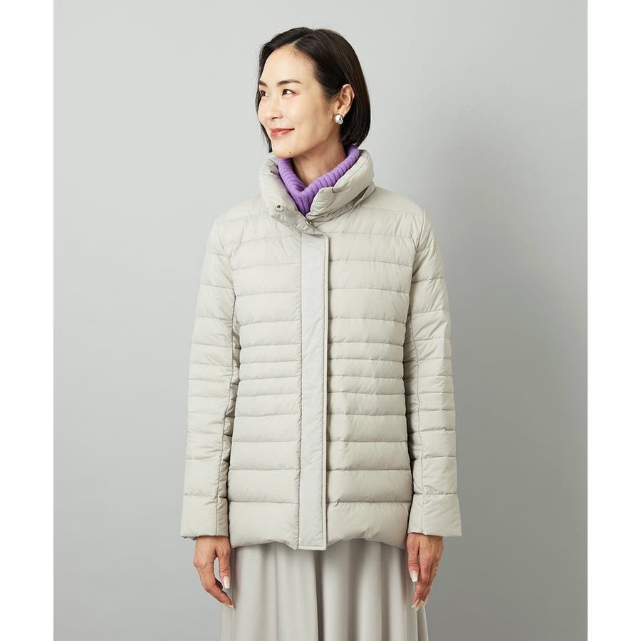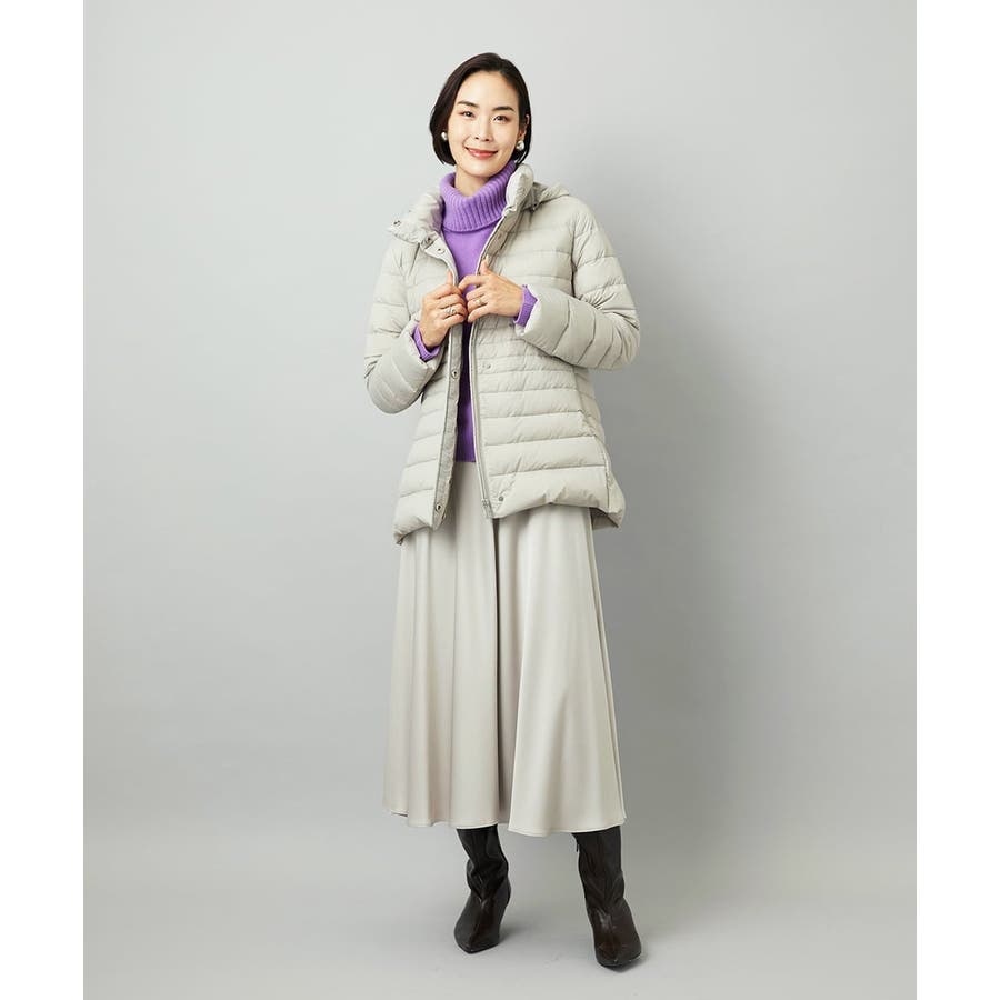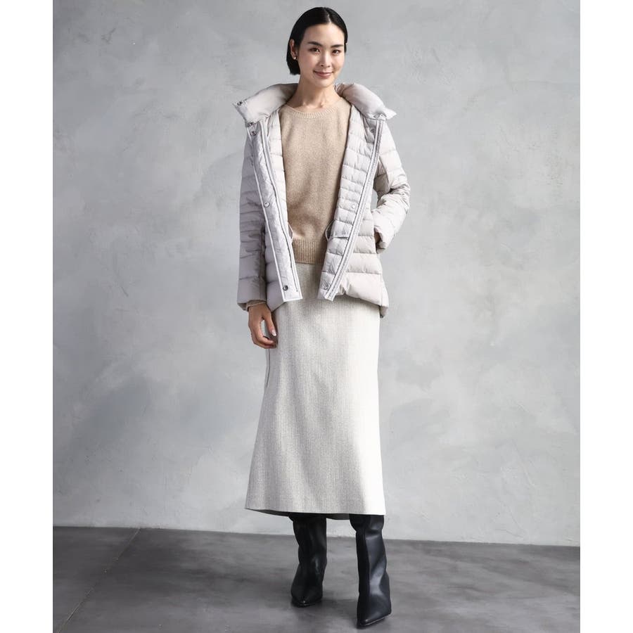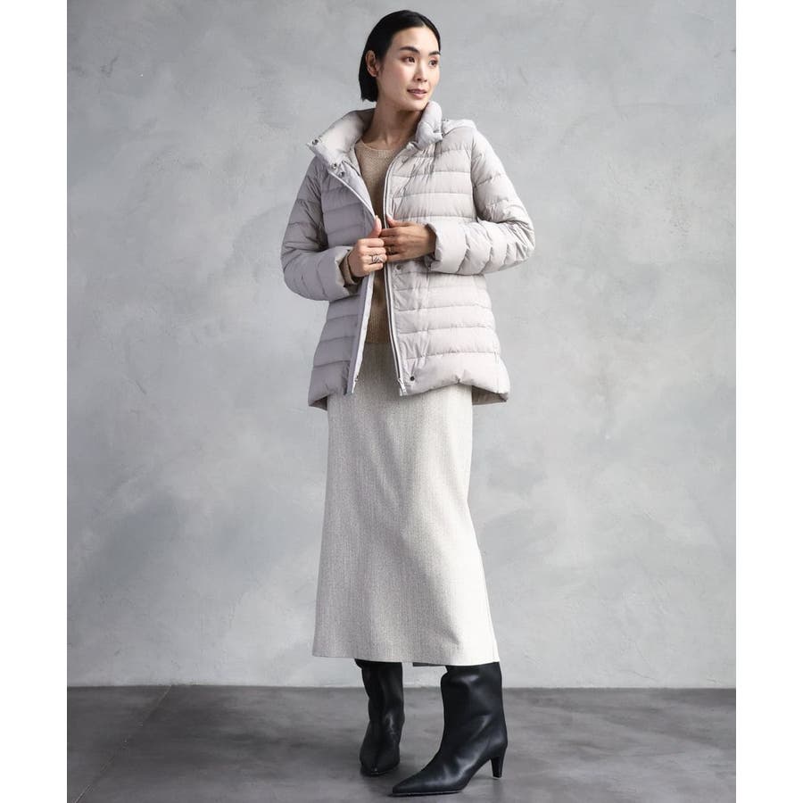 すっきりとしたシルエットのダウンジャケットはスカートスタイルとマッチ。腰回りをカバーしてくれる着丈でバランスが取りやすいです。同型ミドル丈[FMVBD41610]もご用意いたしております。