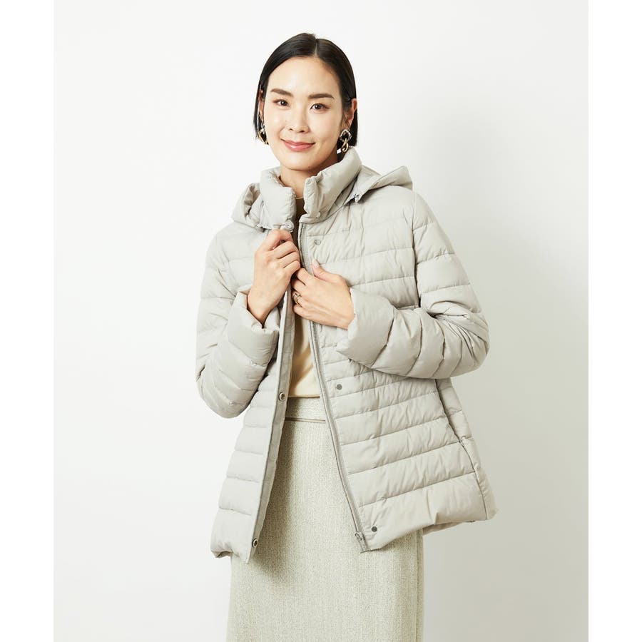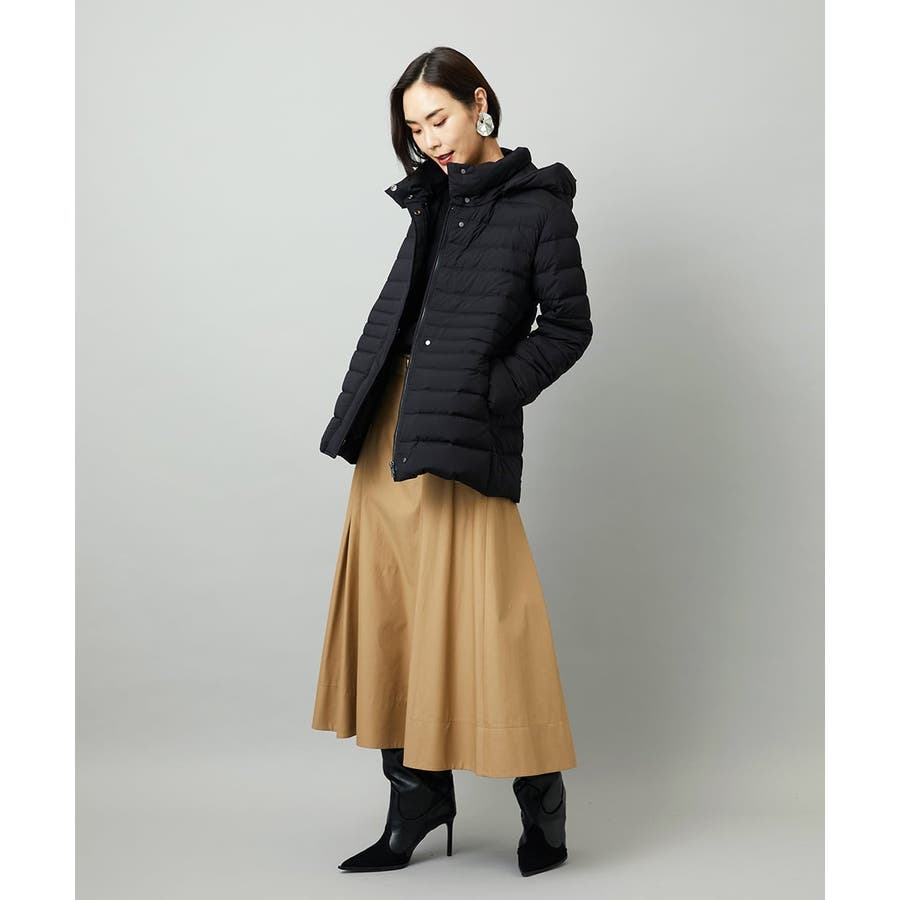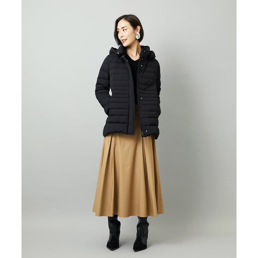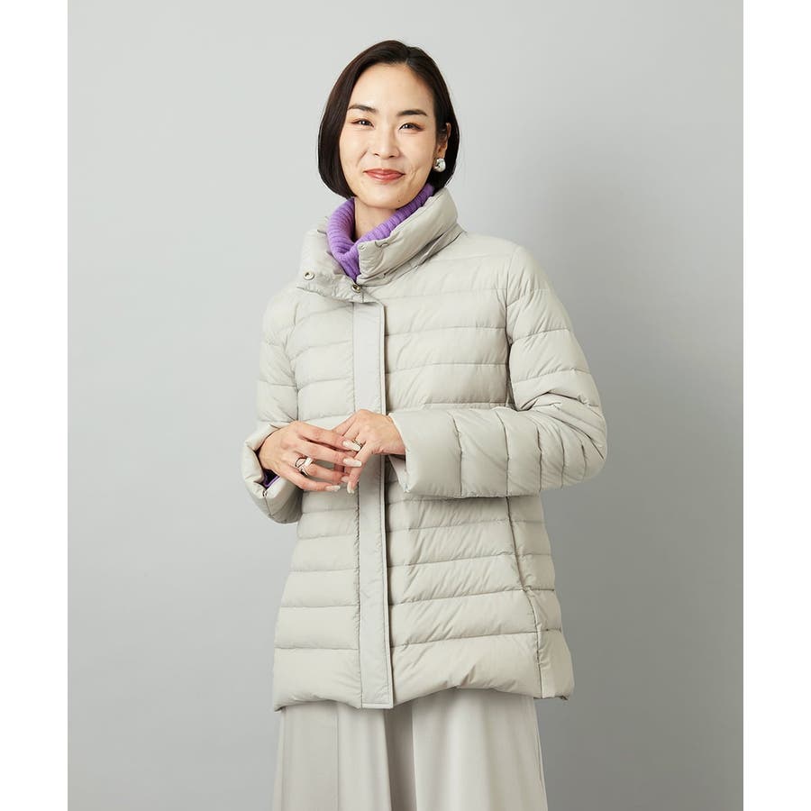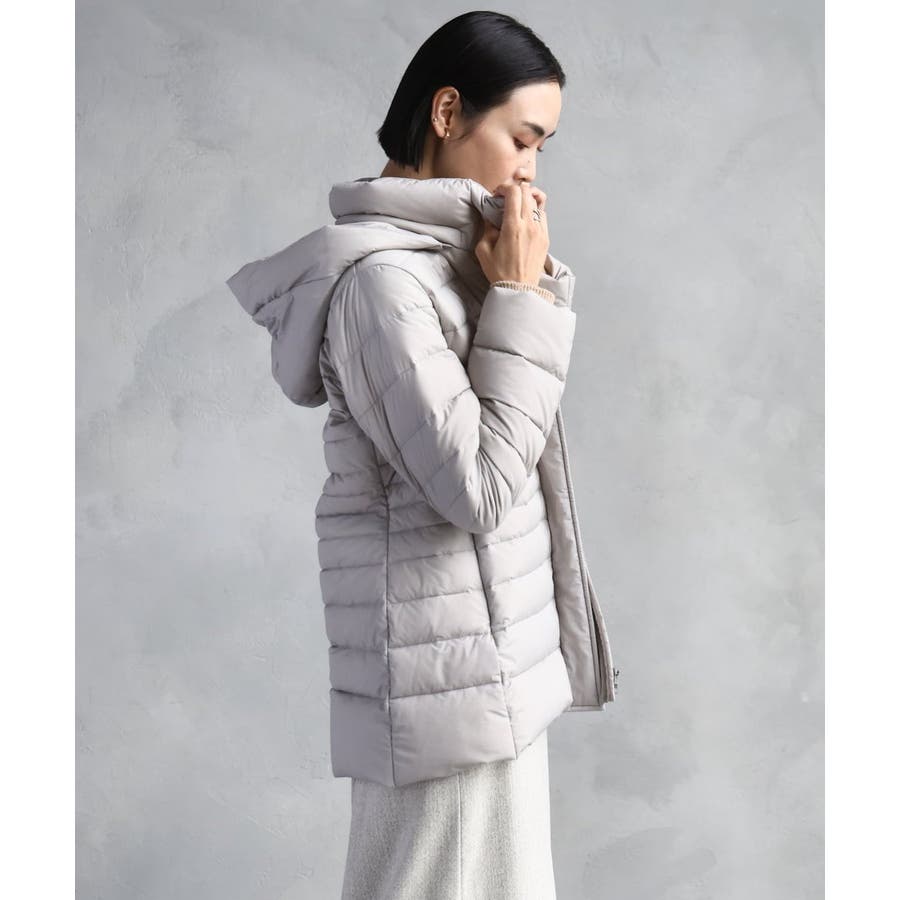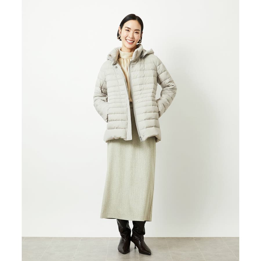 すっきりとしたシルエットのダウンジャケットはスカートスタイルとマッチ。腰回りをカバーしてくれる着丈でバランスが取りやすいです。同型ミドル丈[FMVBD41610]もご用意いたしております。