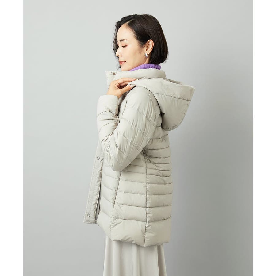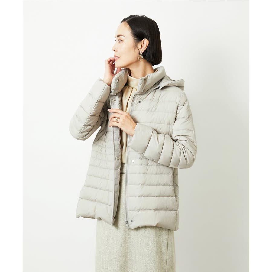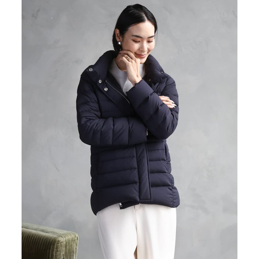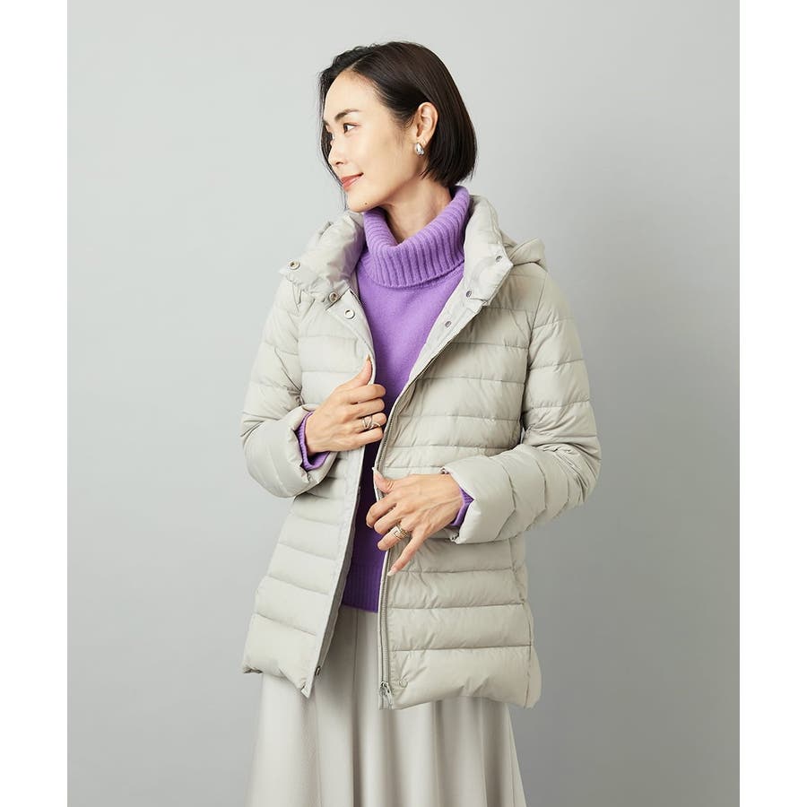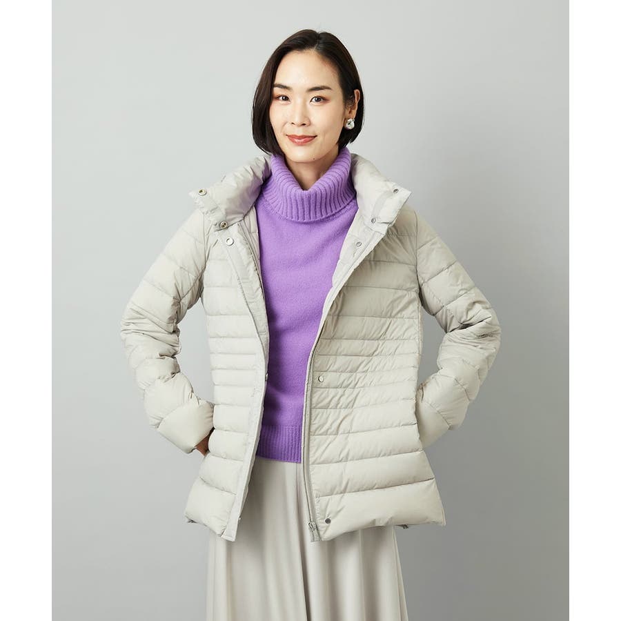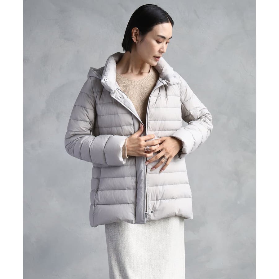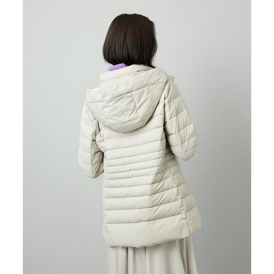すっきりとしたシルエットのダウンジャケットはスカートスタイルとマッチ。腰回りをカバーしてくれる着丈でバランスが取りやすいです。同型ミドル丈[FMVBD41610]もご用意いたしております。