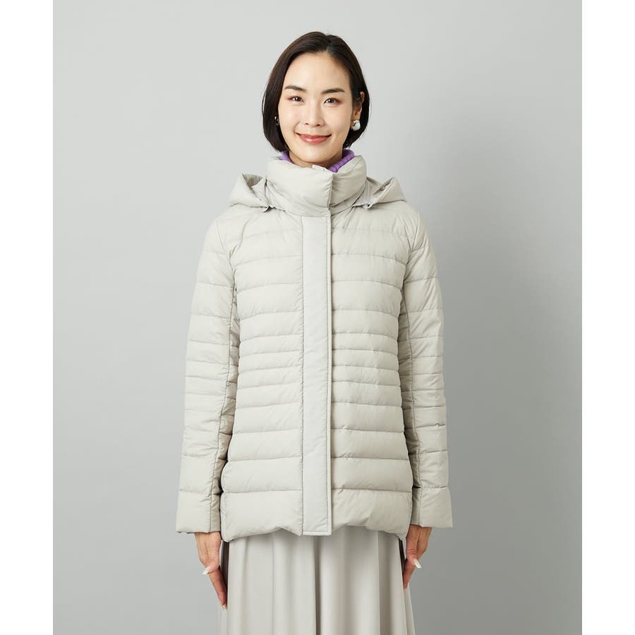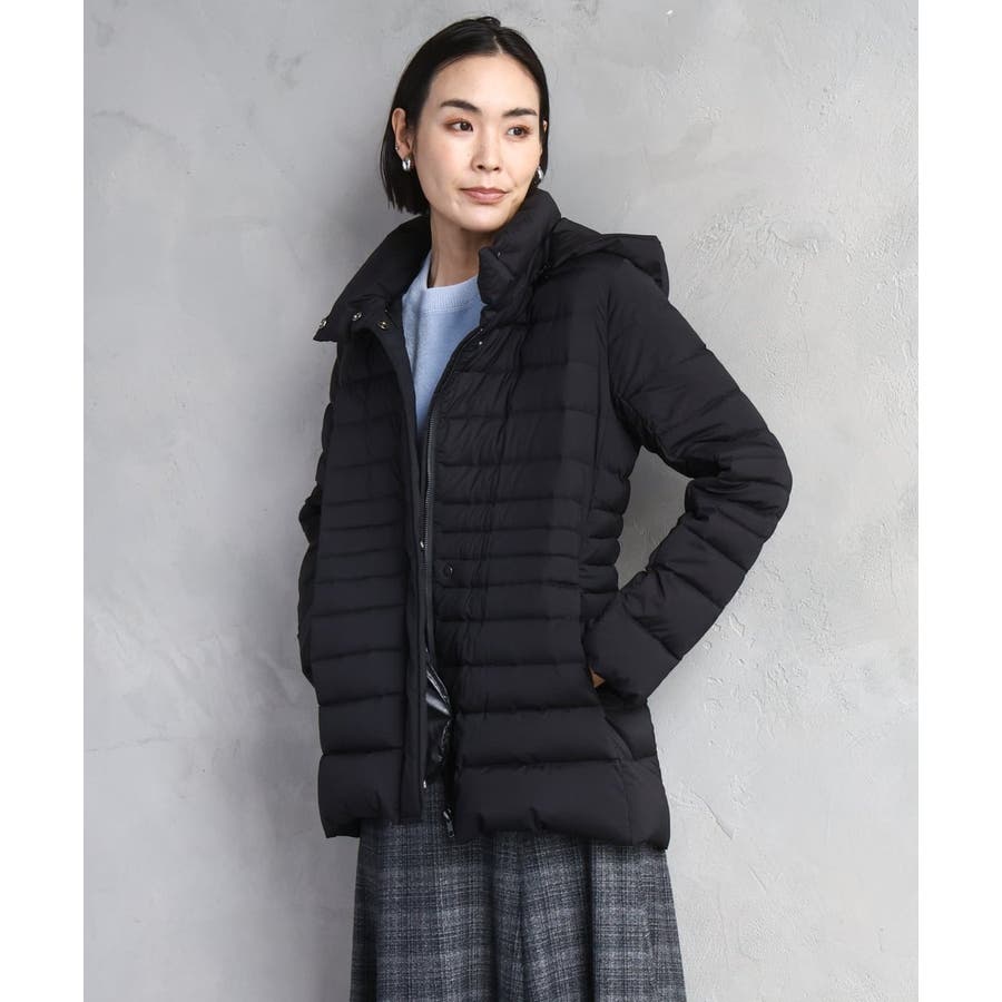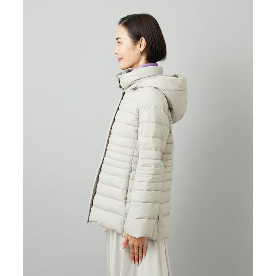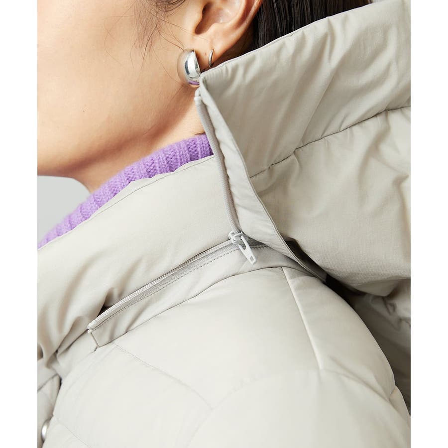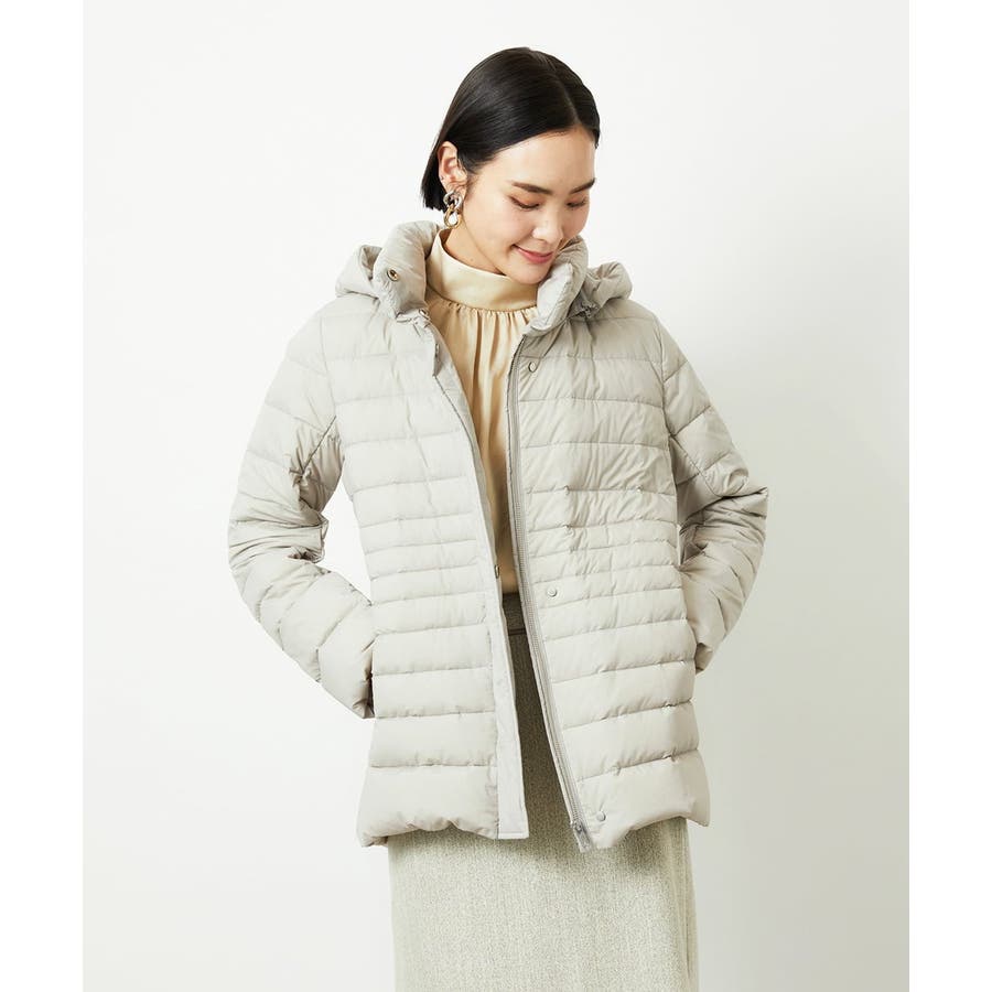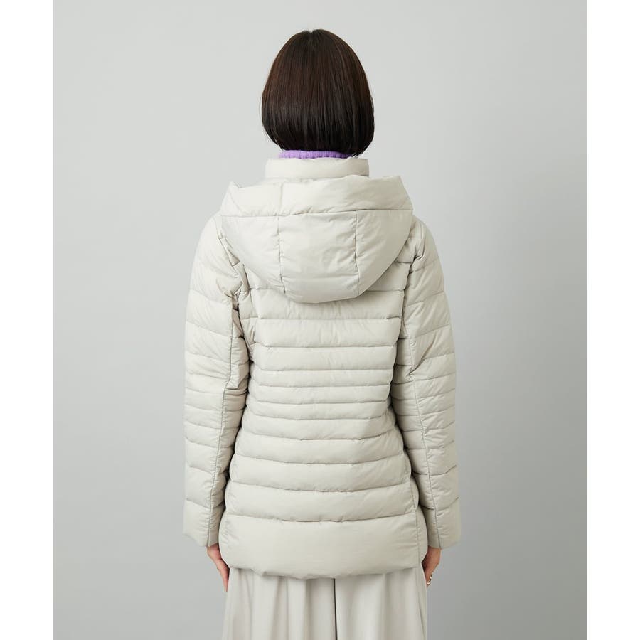 すっきりとしたシルエットのダウンジャケットはスカートスタイルとマッチ。腰回りをカバーしてくれる着丈でバランスが取りやすいです。同型ミドル丈[FMVBD41610]もご用意いたしております。