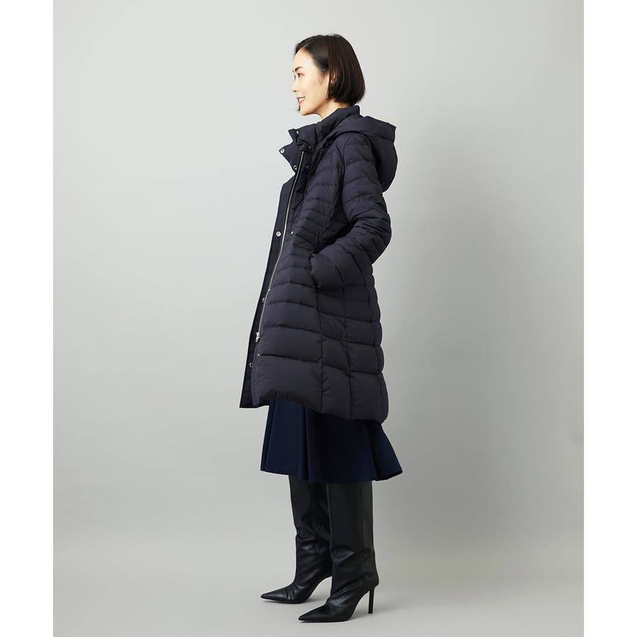 高いストレッチ性を活かしたすっきりとしたシルエットが特徴のダウンジャケット。ウエストに向かいグラデーション状にピッチを変化させることでスタイルアップ効果が期待できます。フードは取り外し可能。メタルパーツを隠しシンプルな見た目に。カジュアルになり過ぎず、通勤スタイルやタウンユースにもおすすめです。40サイズは限定店舗展開です。