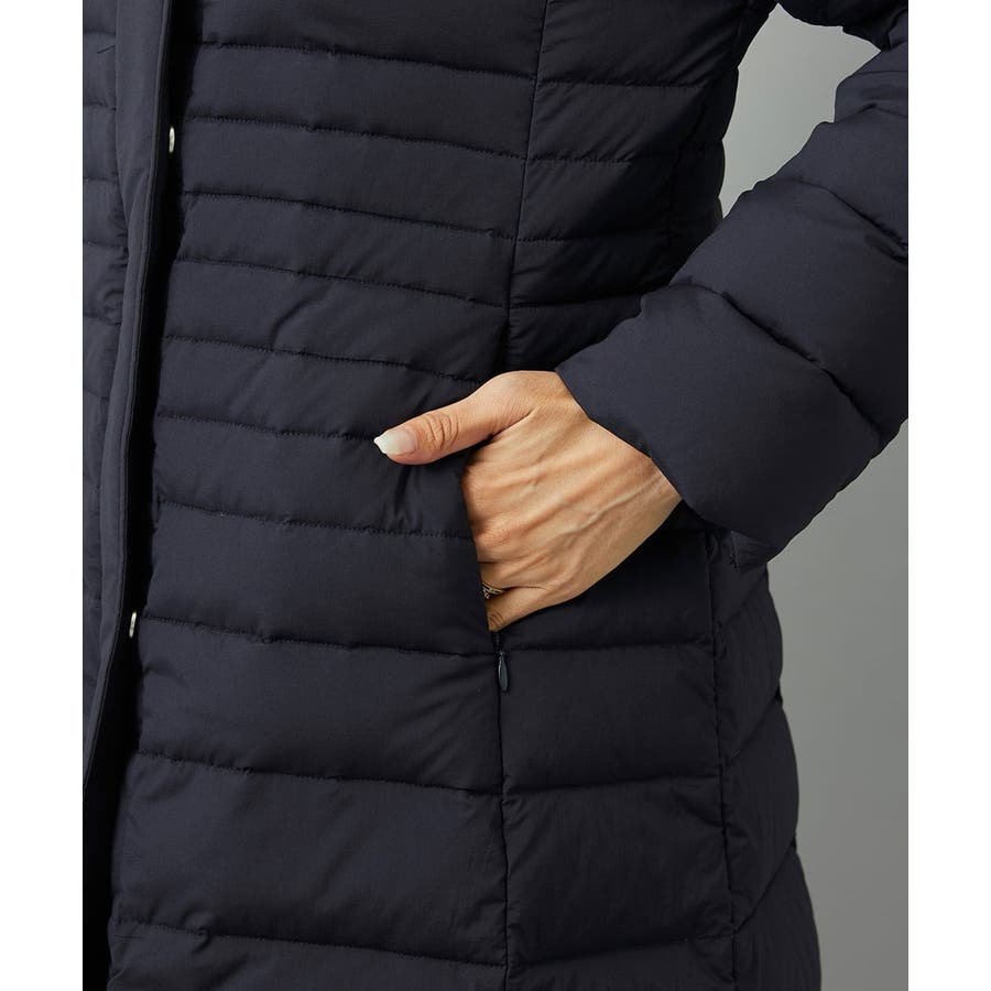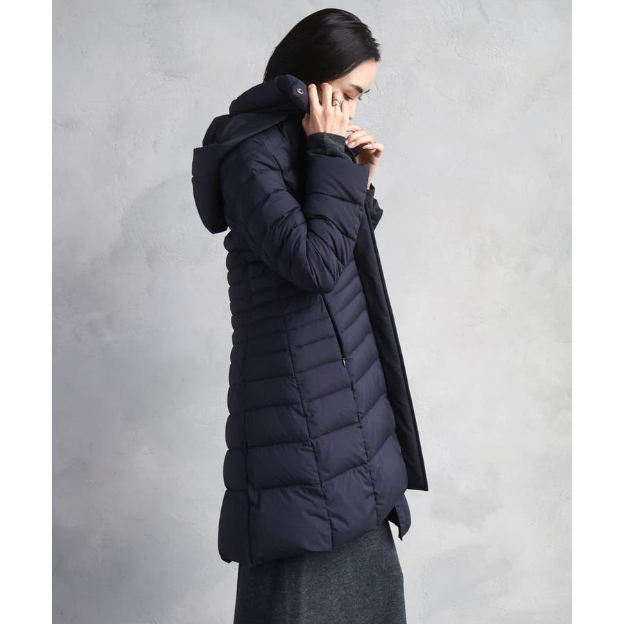 さらっとしたタッチの風合いと、ストレッチ素材ならではの動きやすさが特徴の定番ダウンコート。環境への影響に配慮してリサイクルダウンを使用しています。軽量で着心地の良さはもちろん、スッキリしたシルエットはストレッチダウンならでは。