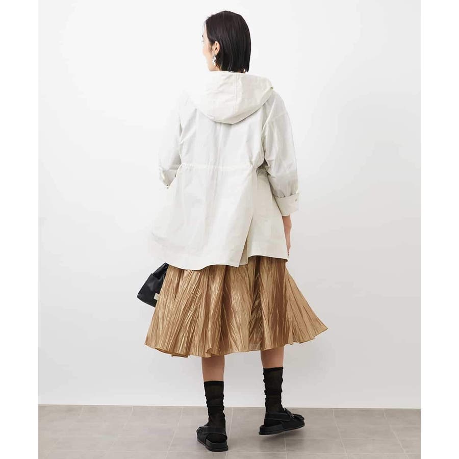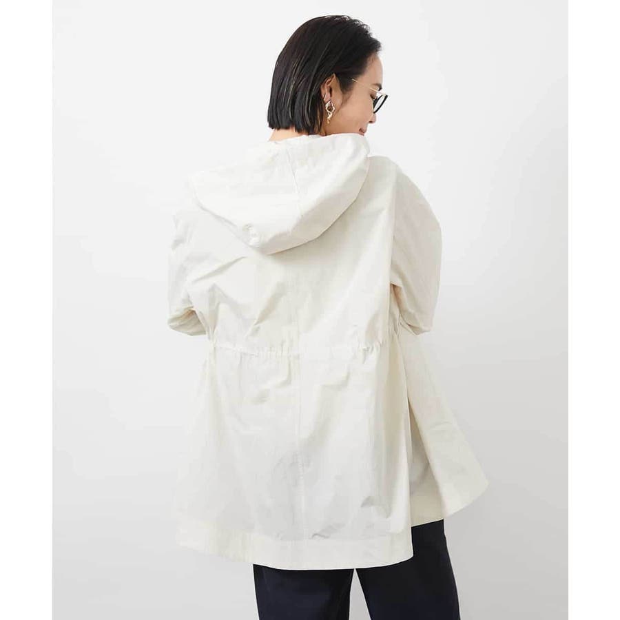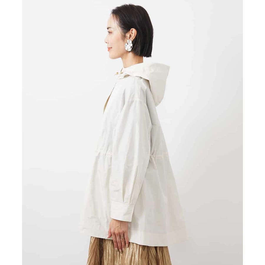 ON / OFFで着回しが効くライトアウター。フードをかぶっていない時も立体的なシルエットをキープする工夫を加えた仕様になっています。インナーのシルエットを邪魔しないゆったりとしたアームとウエストを絞ってシルエットに変化を付けられる点もポイントです。40サイズは限定店舗展開です。