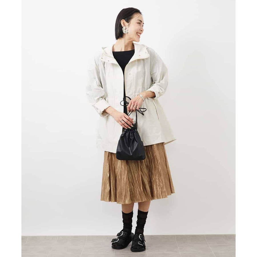 プリーツスカートやIラインのスカートなど女性らしいアイテムを合わせたMIXコーデがおすすめ。ウエストマークができるのでワイドパンツなどボリュームのあるボトムスともバランスよく着ていただけます。同素材のショートブルゾン[FMVDA02430]・ドッキングワンピース[FMEDA02430]もご用意しております。