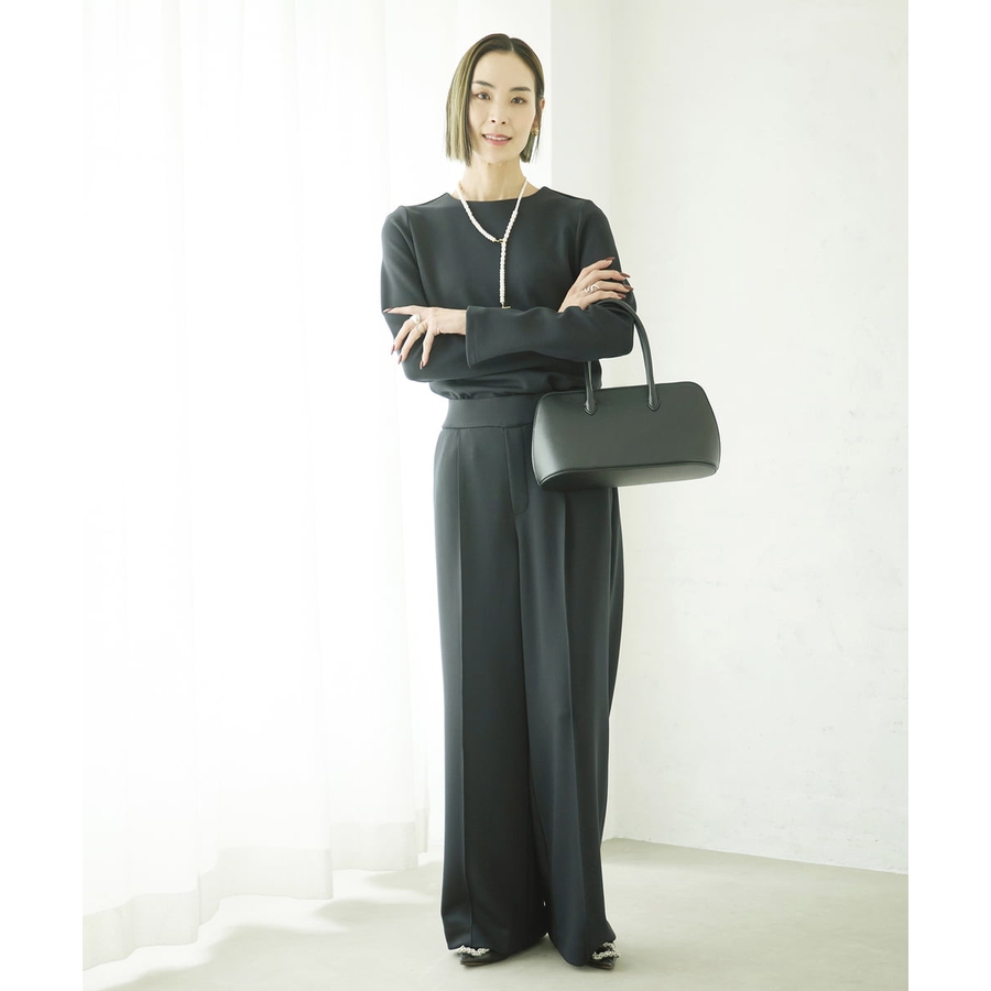 小林有里さんコラボアイテムとして、ケープ付きブラウス[FMBDV16270]、スリムパンツ[FMLDV20190]、ワイドパンツ[FMKDV21210]、タイトスカートをご用意いたしました。ネックレスとあわせて卒業式や入学式などのセレモニーシーンにもおすすめです。