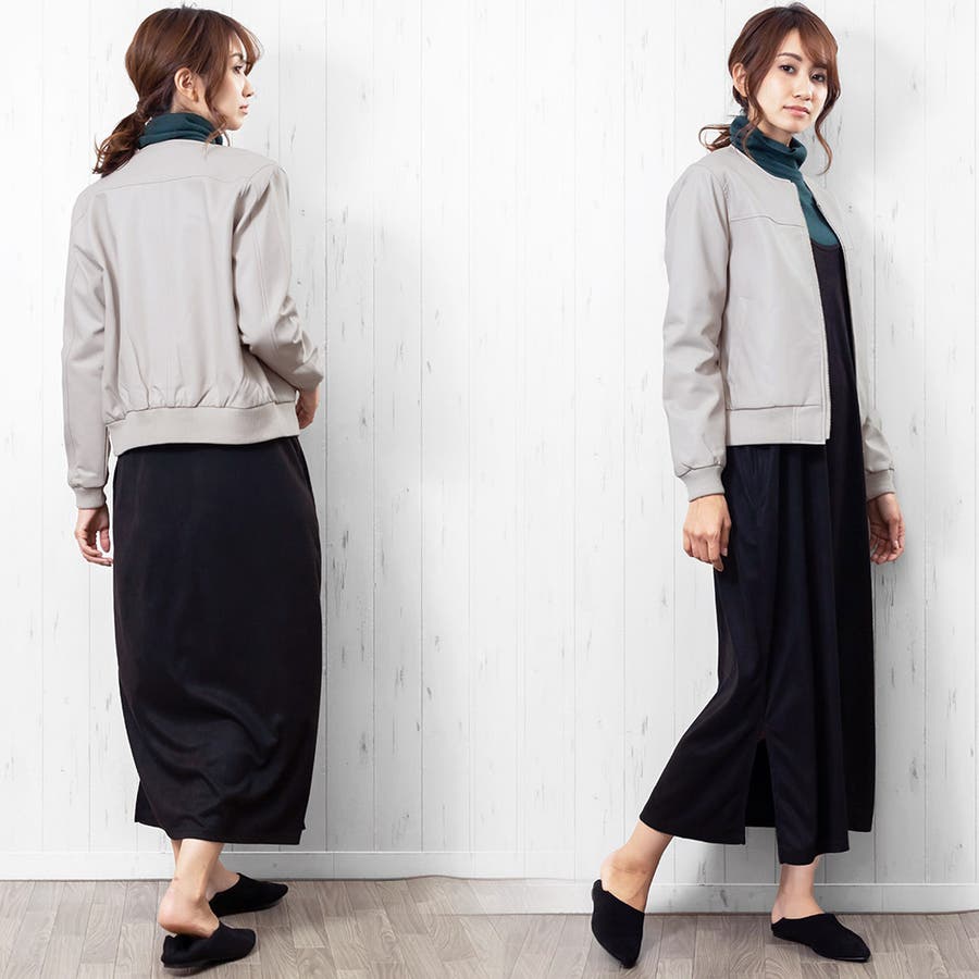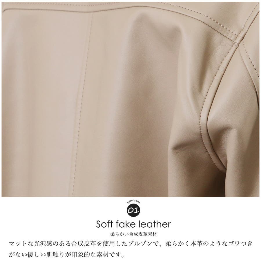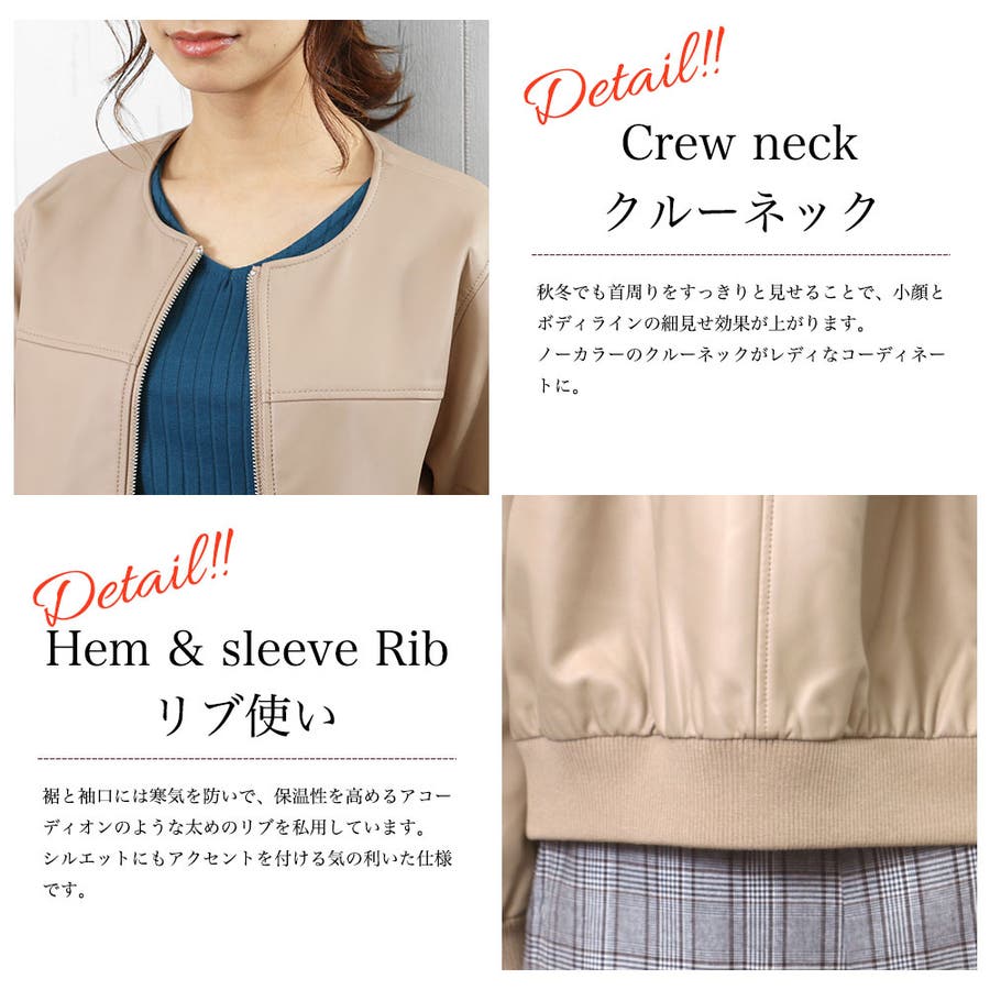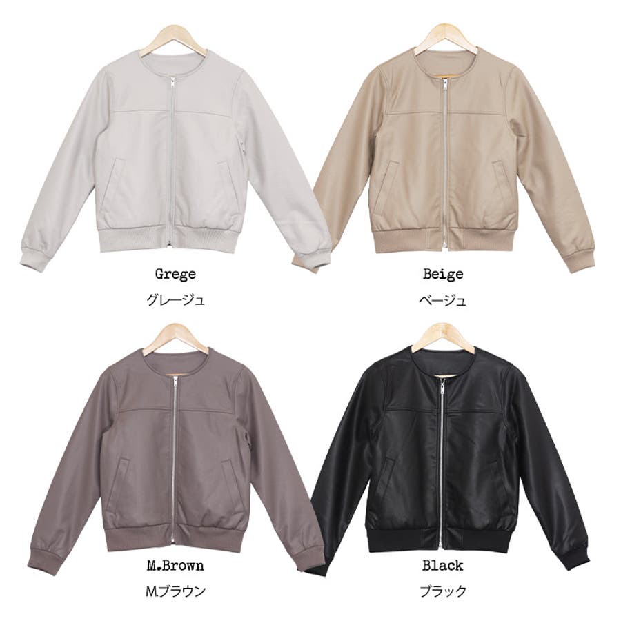 やわらかフェイクレザー ノーカラージャケット ライダース