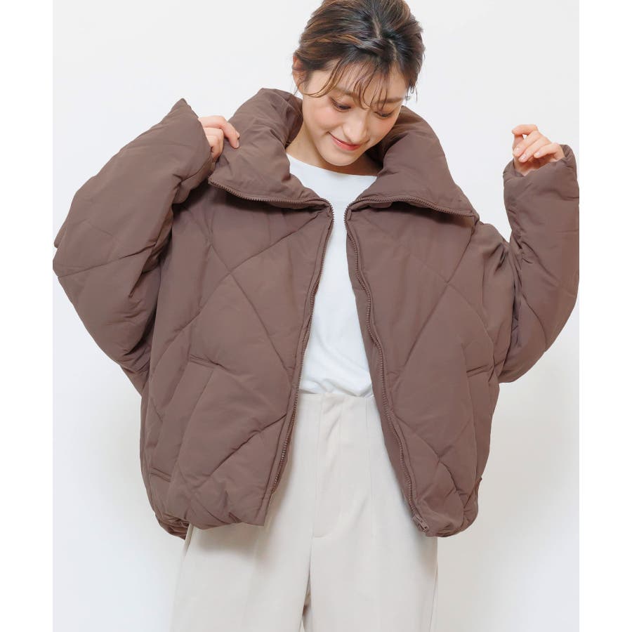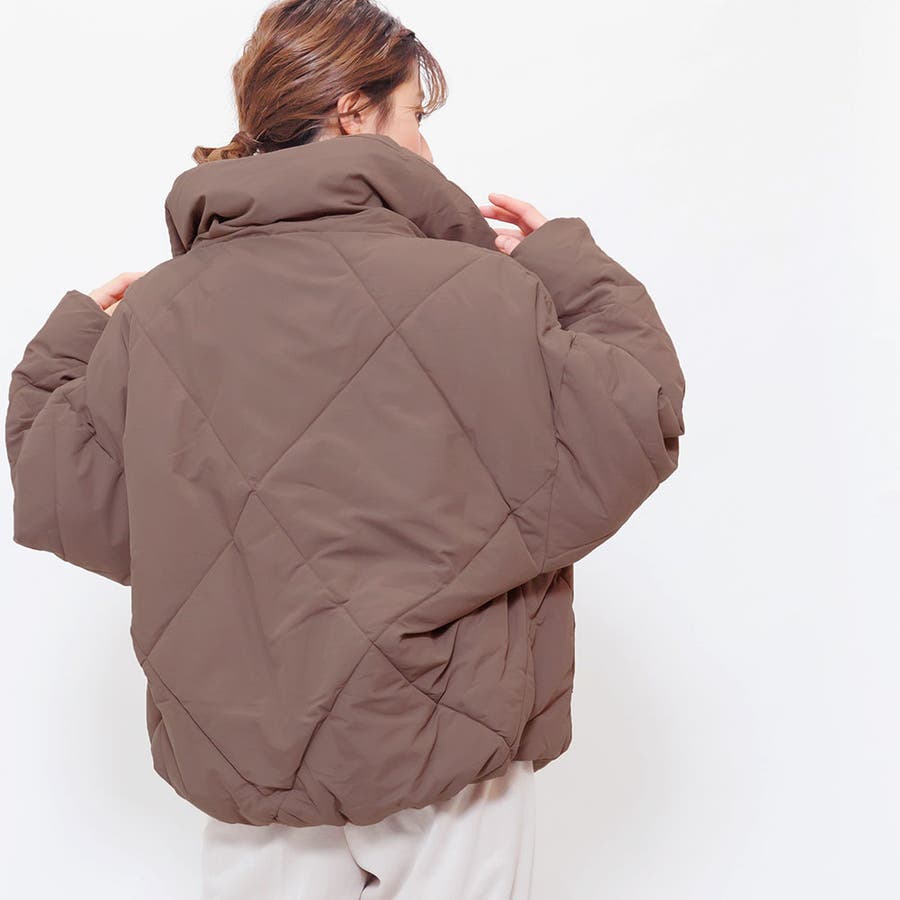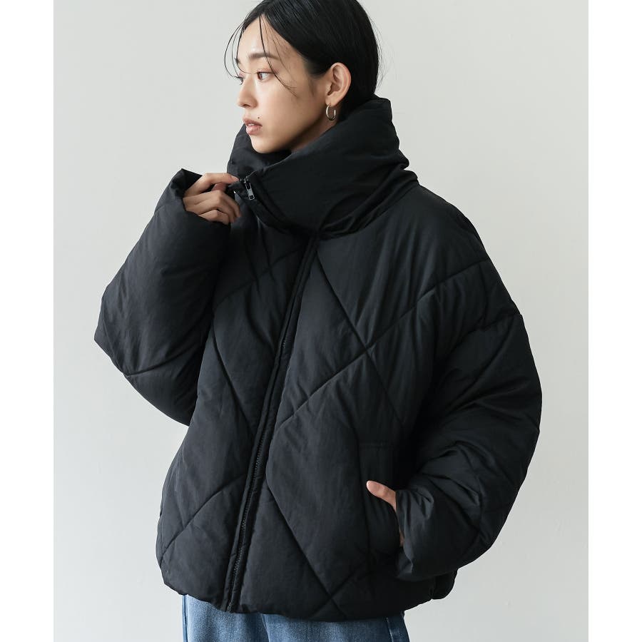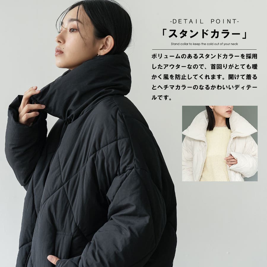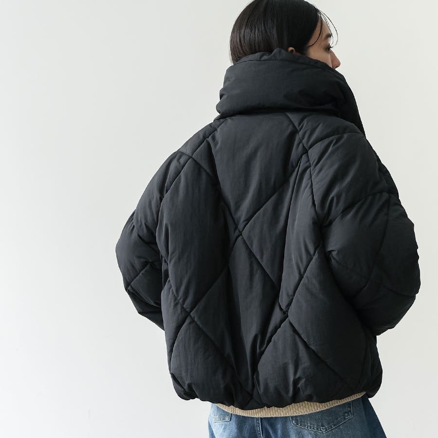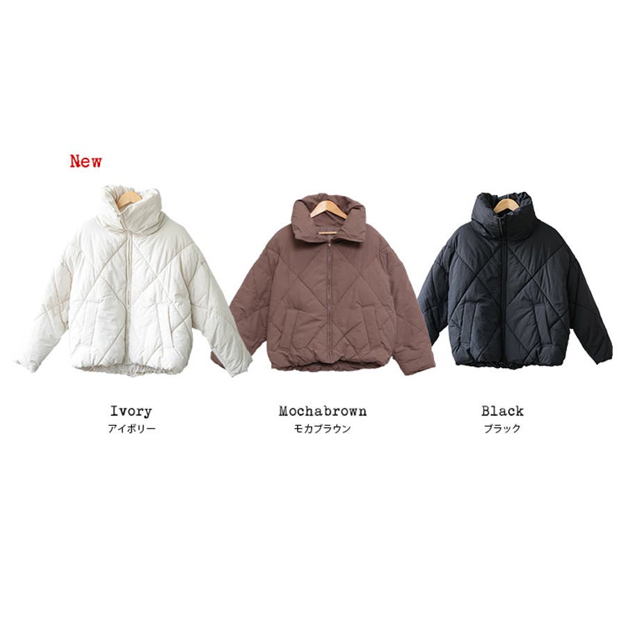 ビッグダイヤキルト中綿ジャケット ミドル丈 無地
