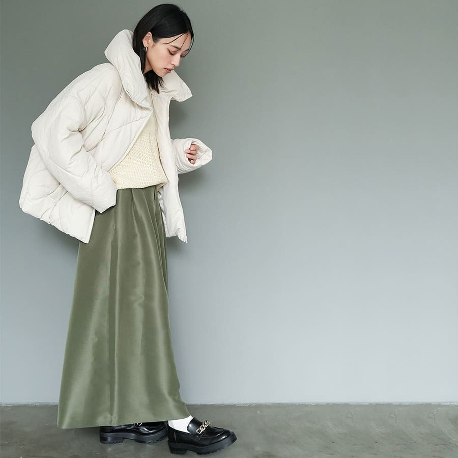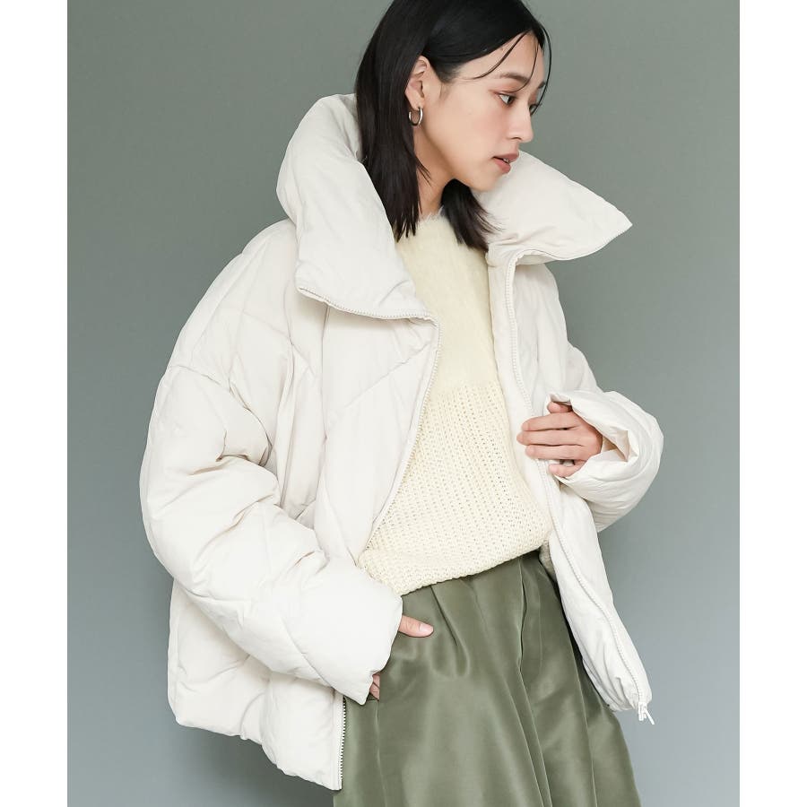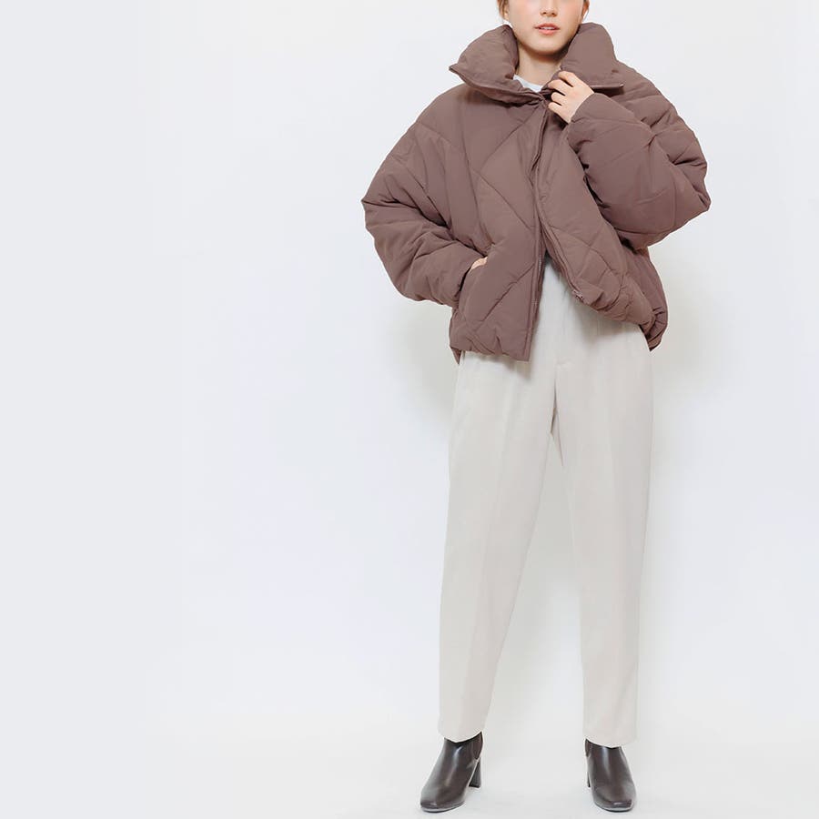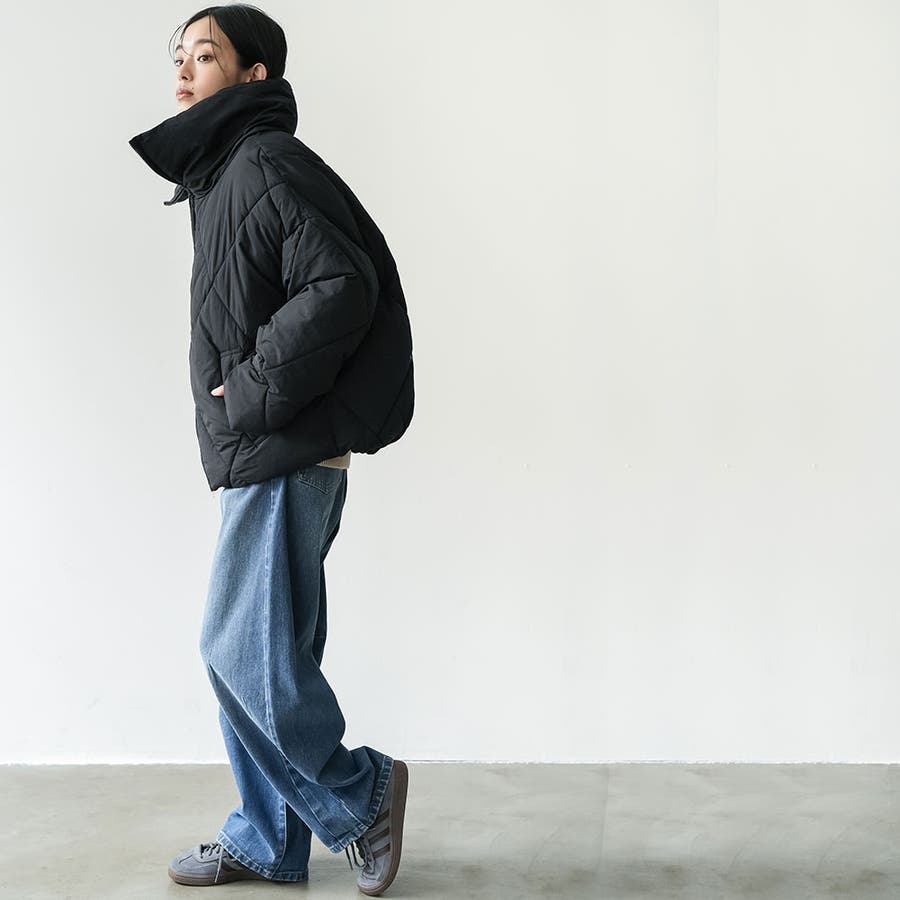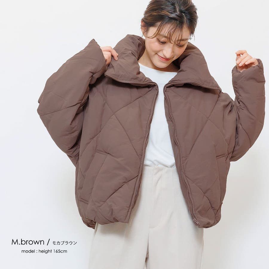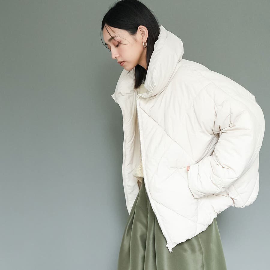 ビッグダイヤキルト中綿ジャケット ミドル丈 無地
