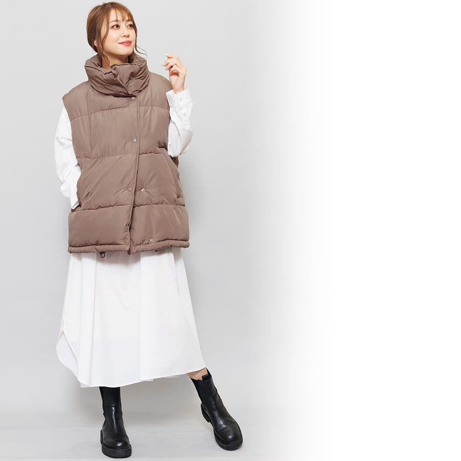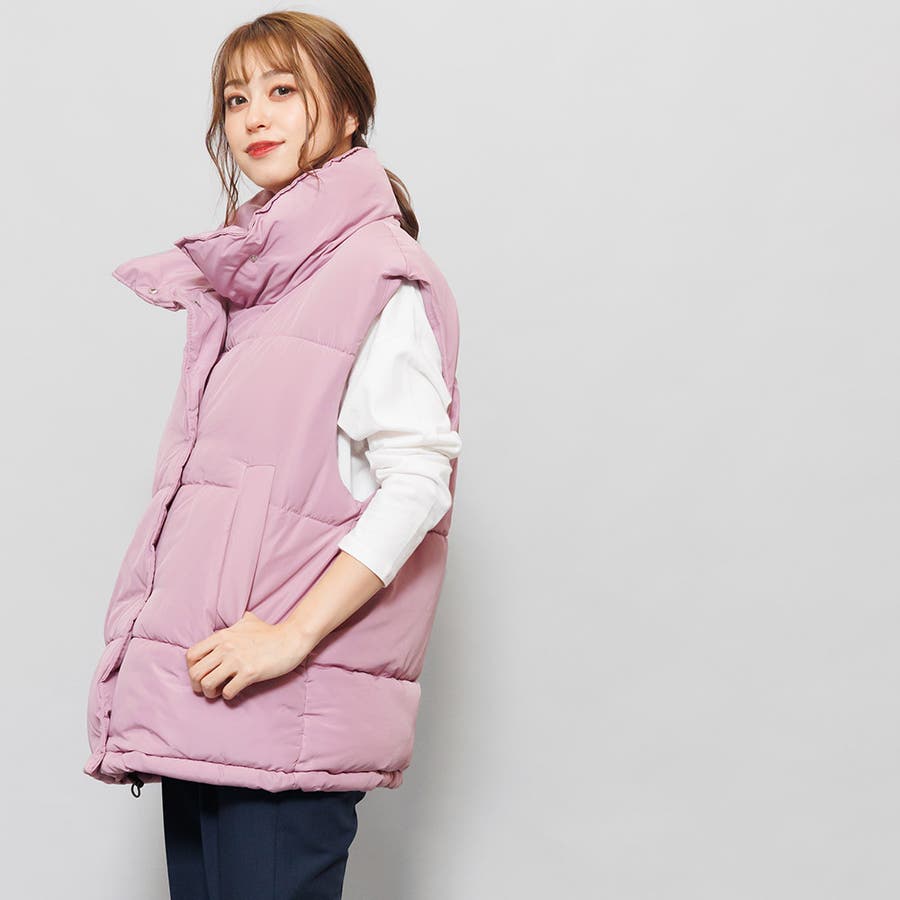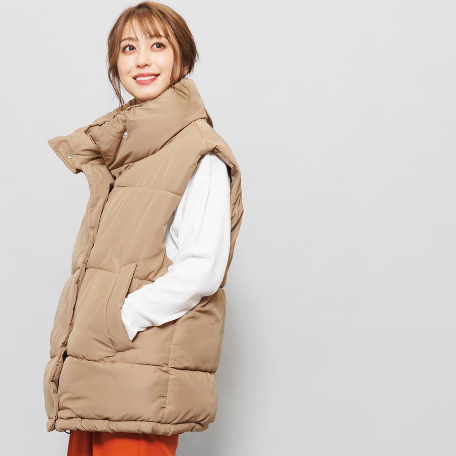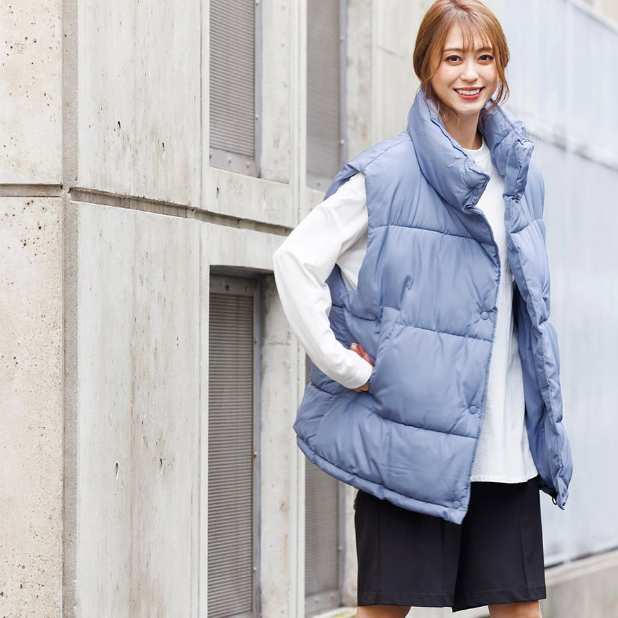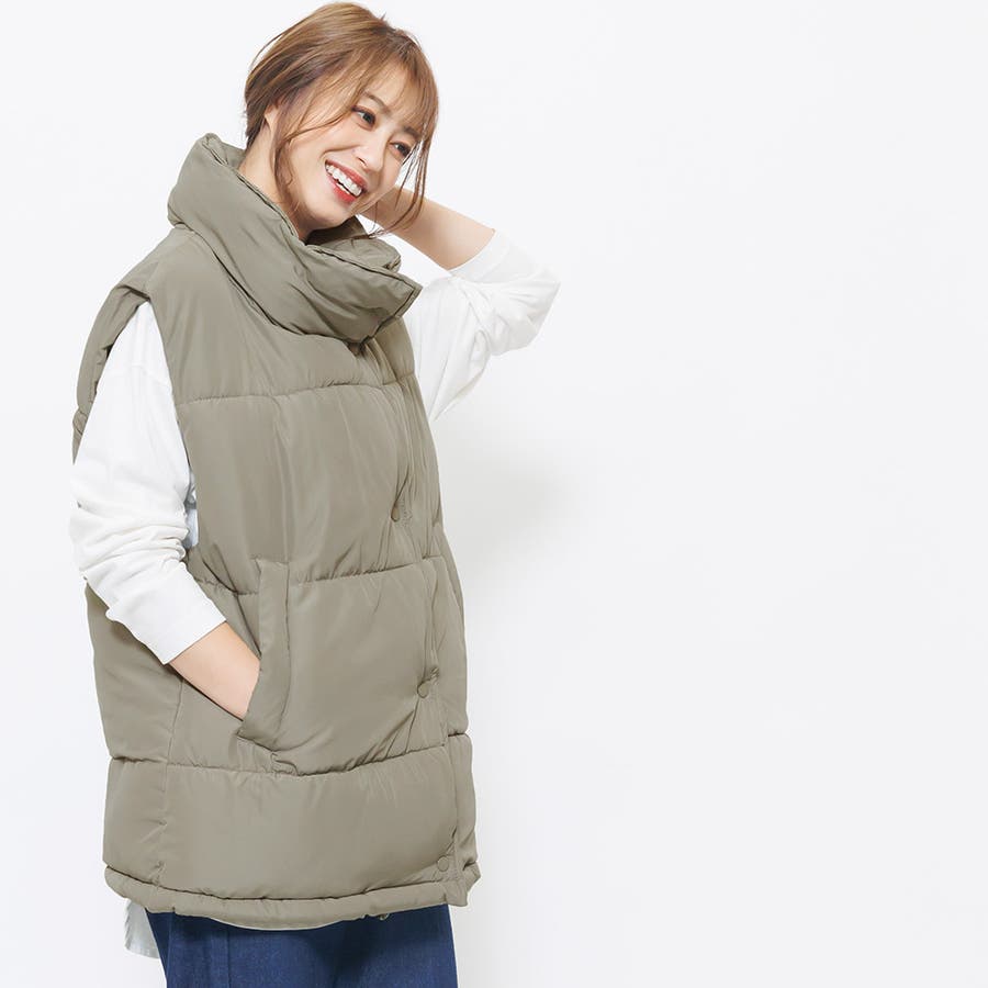 ファイバーダウンオーバーベスト スタンドカラー 暖かい