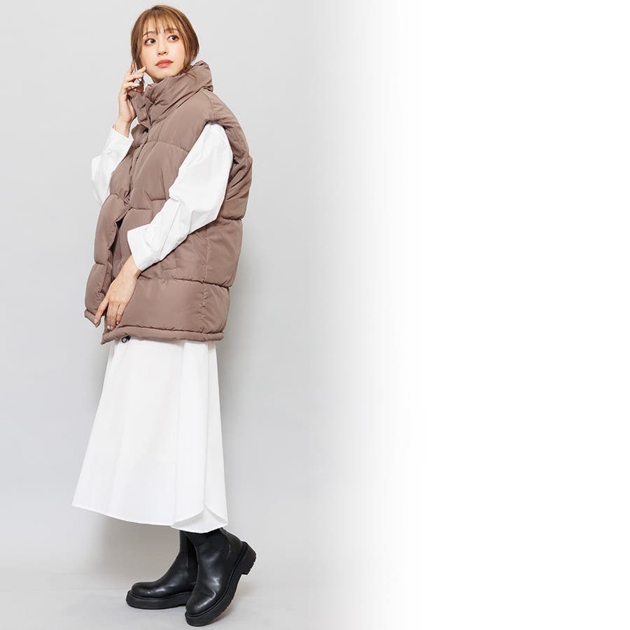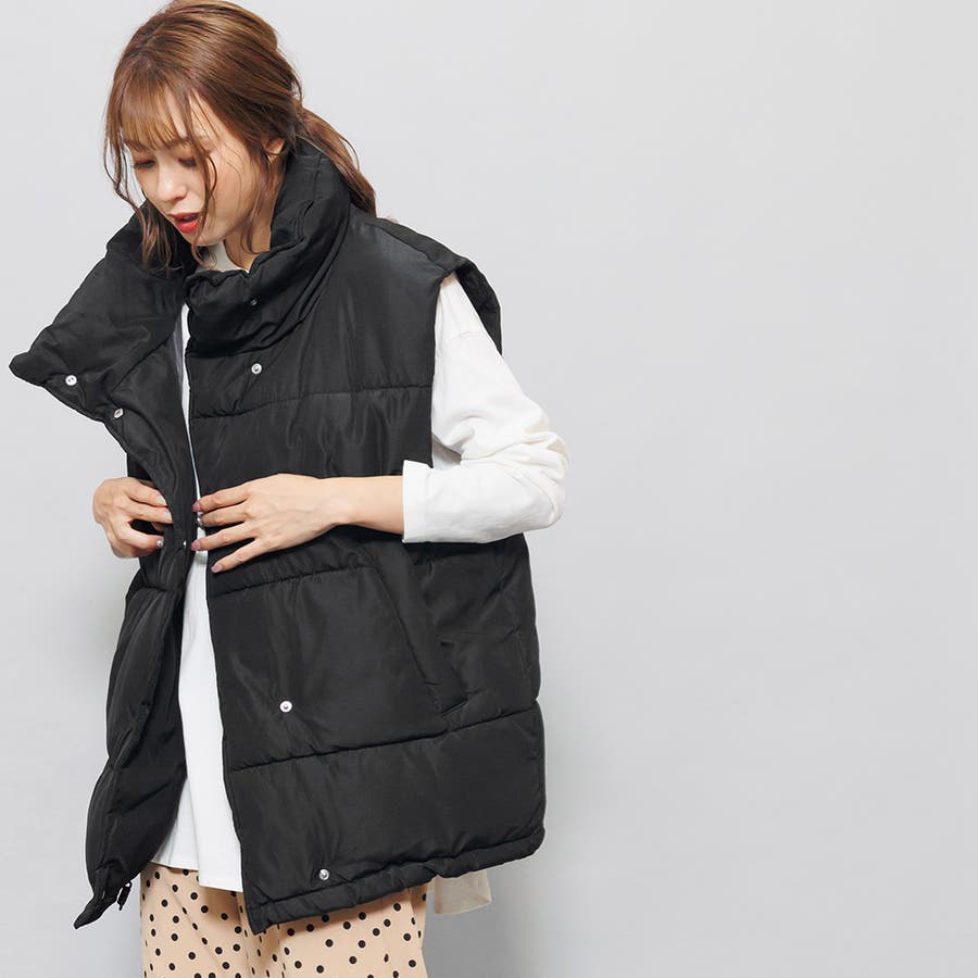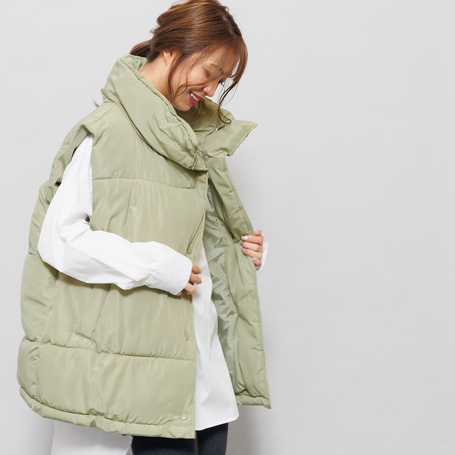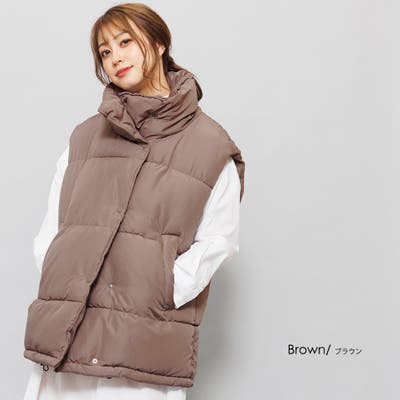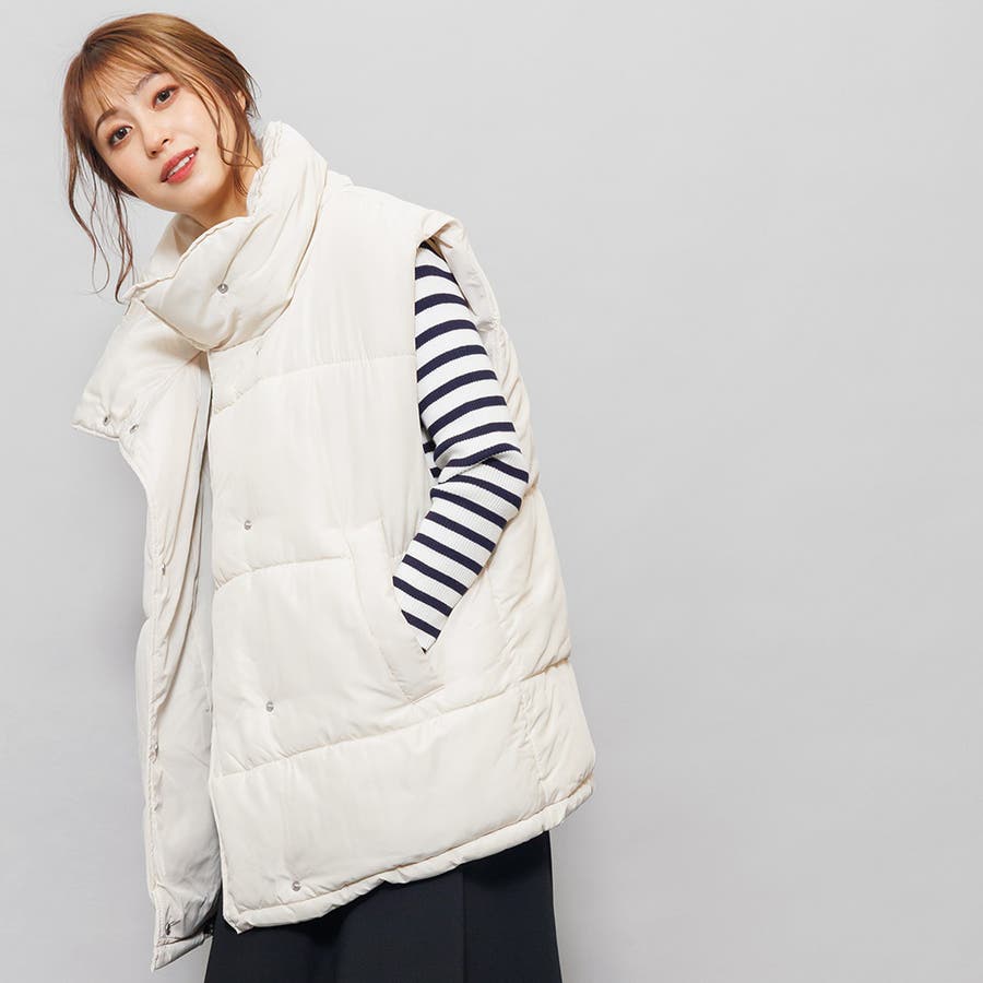 ファイバーダウンオーバーベスト スタンドカラー 暖かい