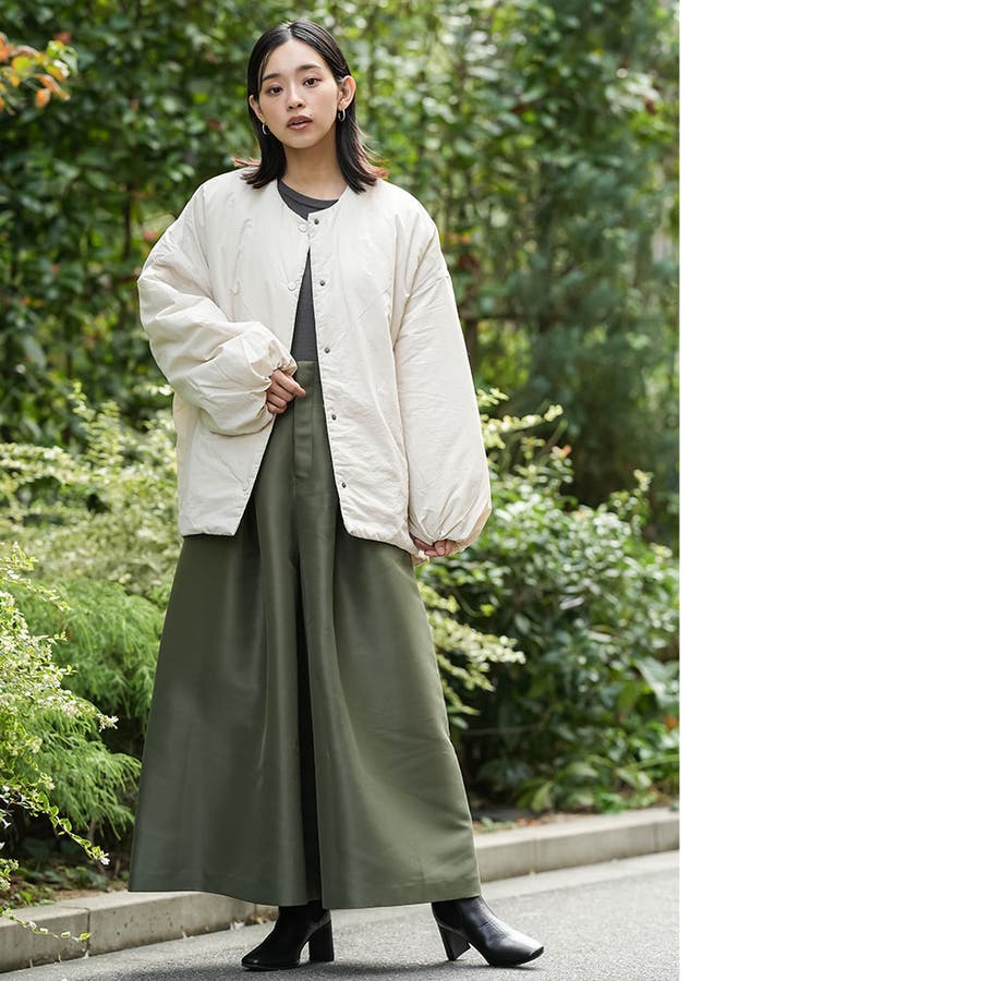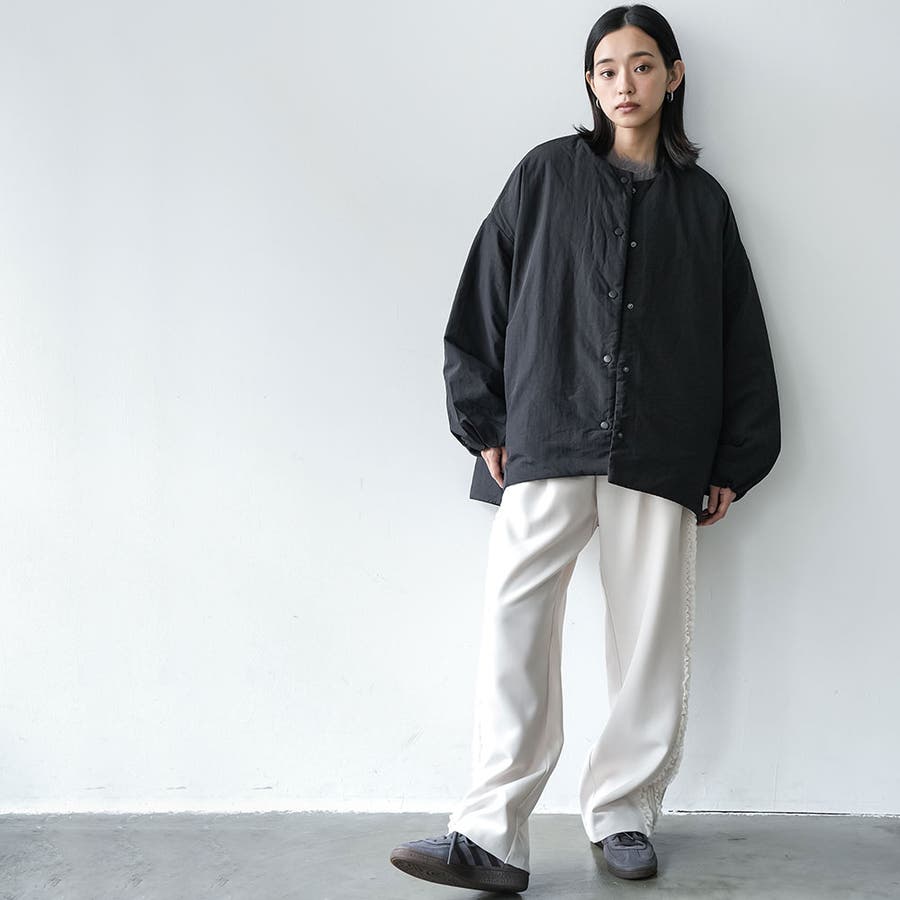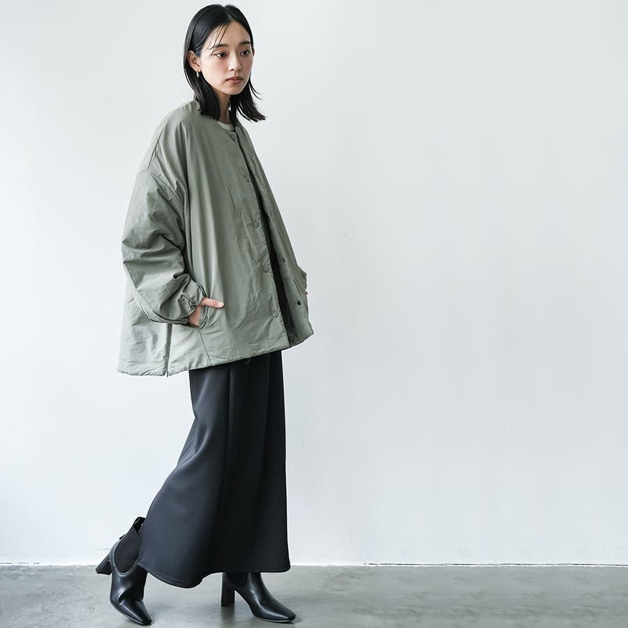 サイドファスナーノーカラージャケット サイドスリット 長袖