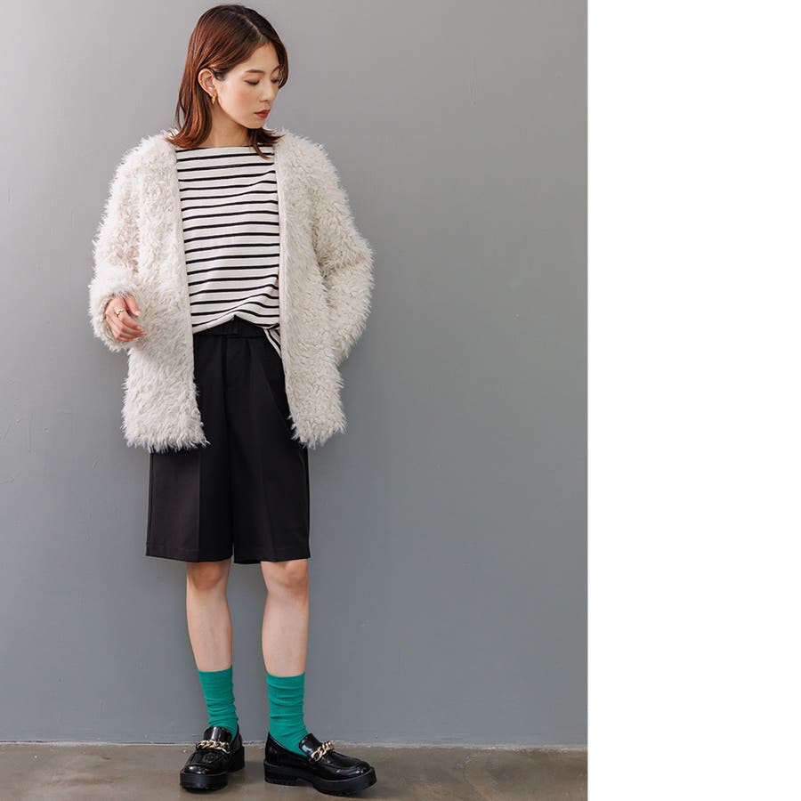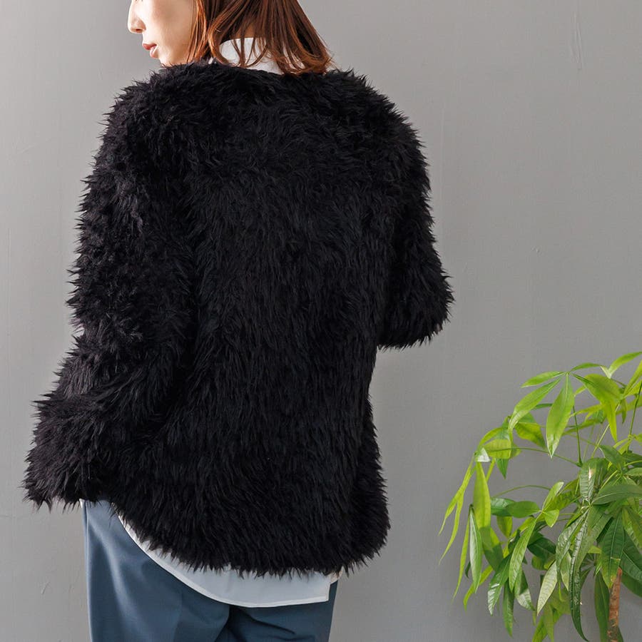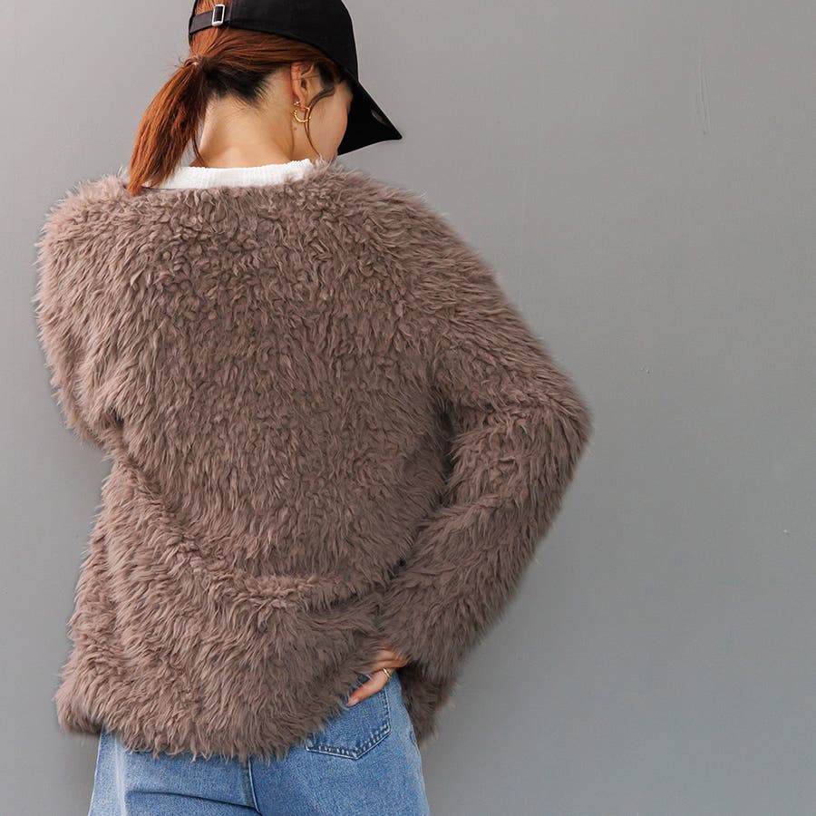 エステルボアミドル丈カーディガン ファー ノーカラー