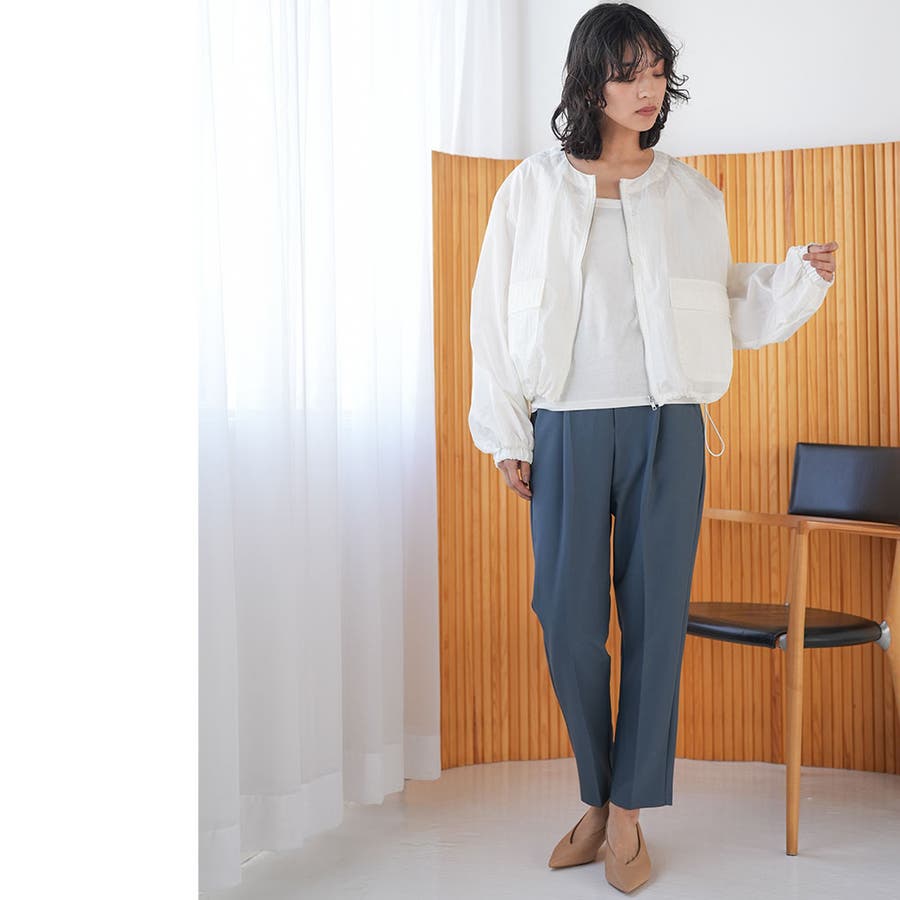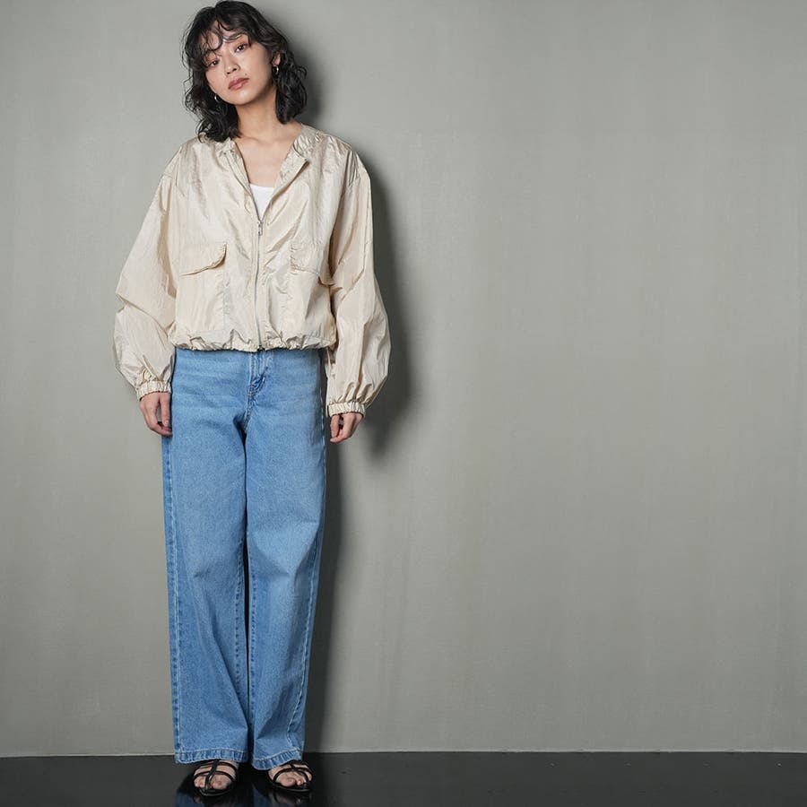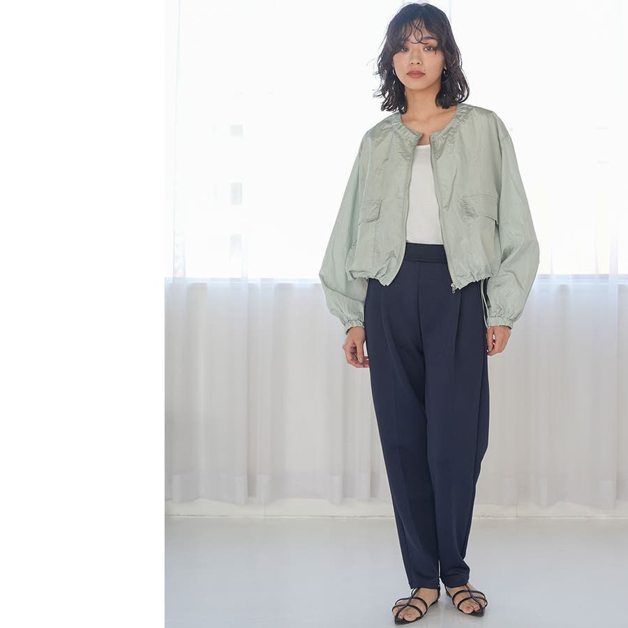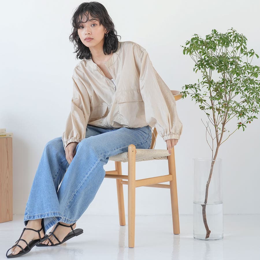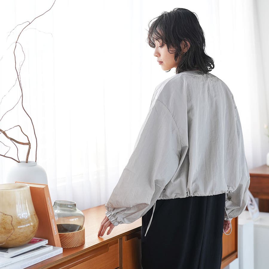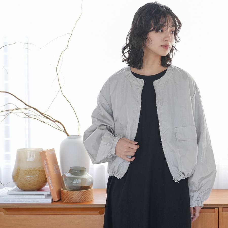 ノーカラー ボリュームスリーブ ブルゾンシャイニー