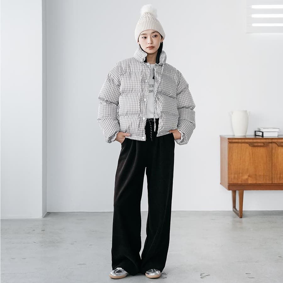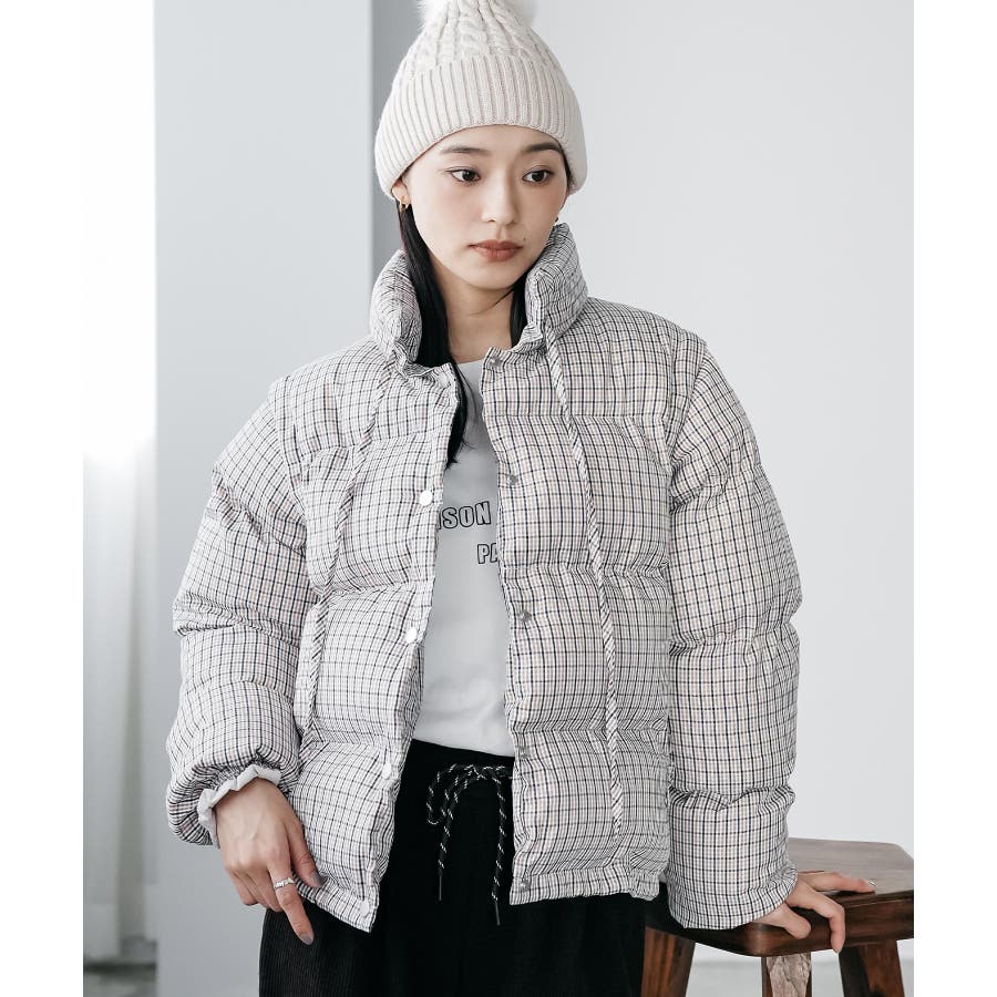 袖取り外しチェック中綿ブルゾン ブルゾン スタンドカラー