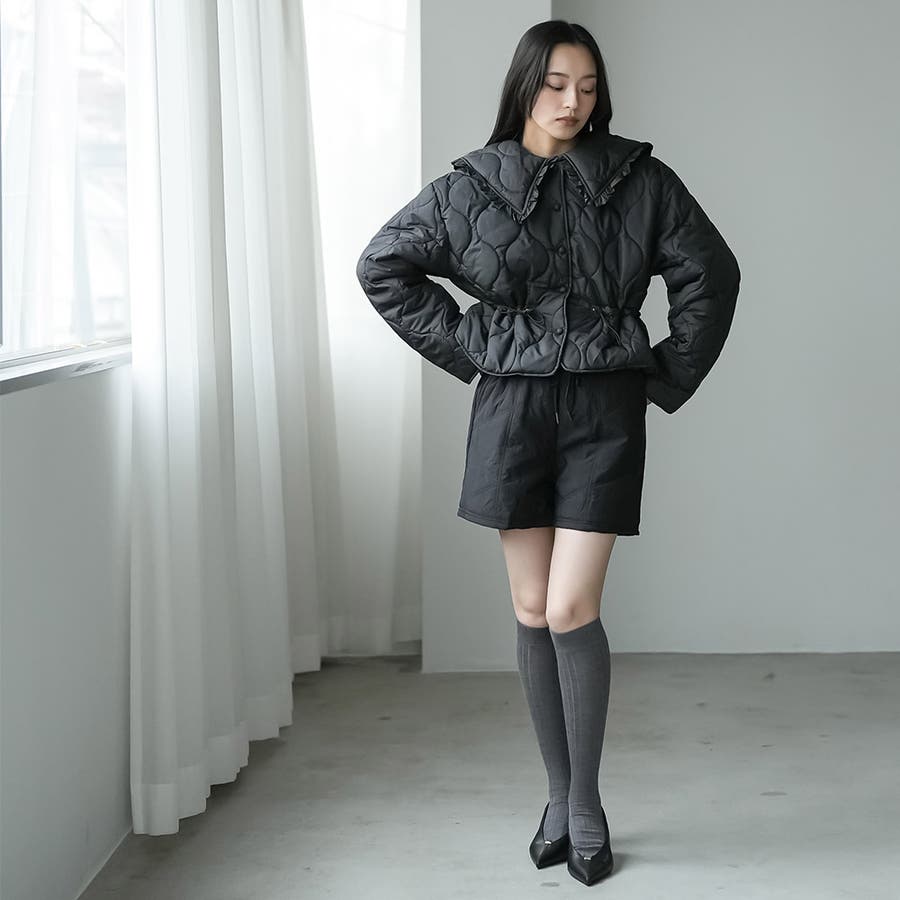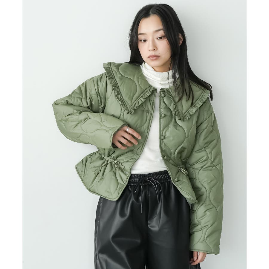 襟フリルキルト中綿ジャケット キルティング フリルカラー