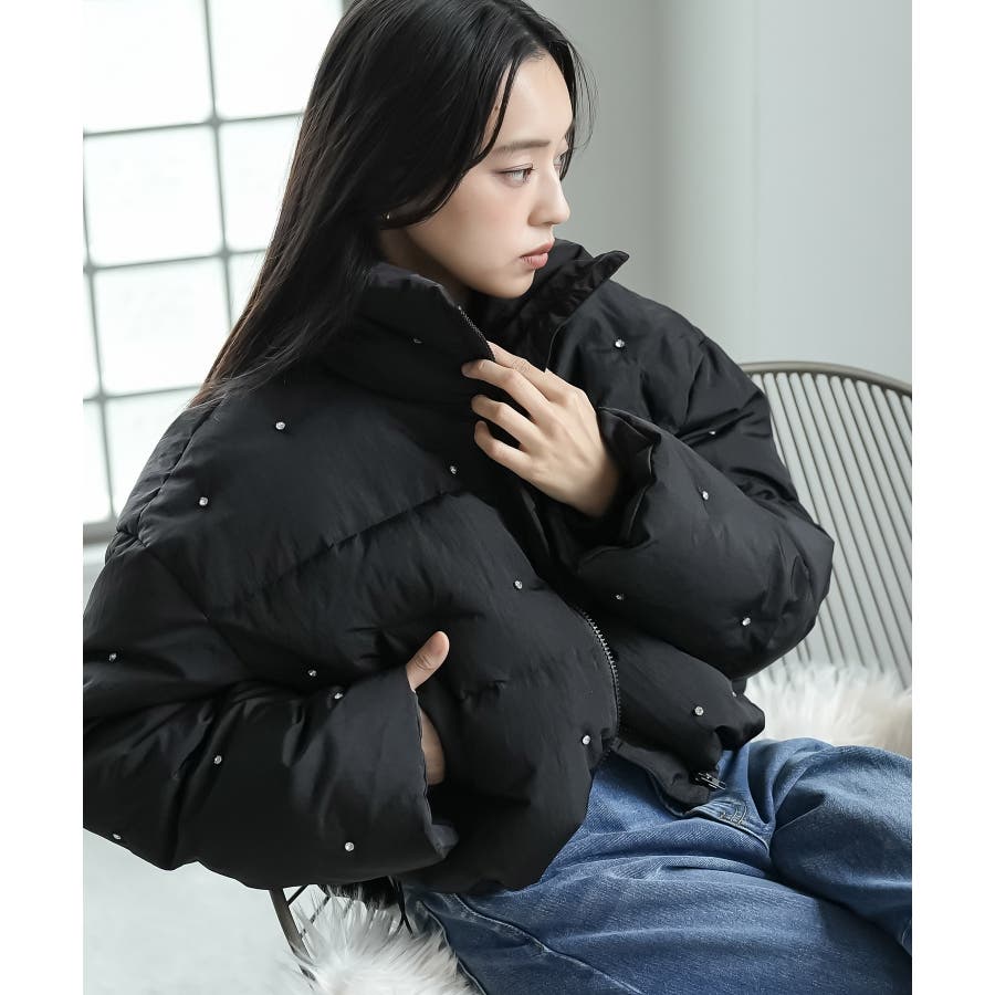 ビジューショートダウンジャケット ビジュー付き ショートダウン