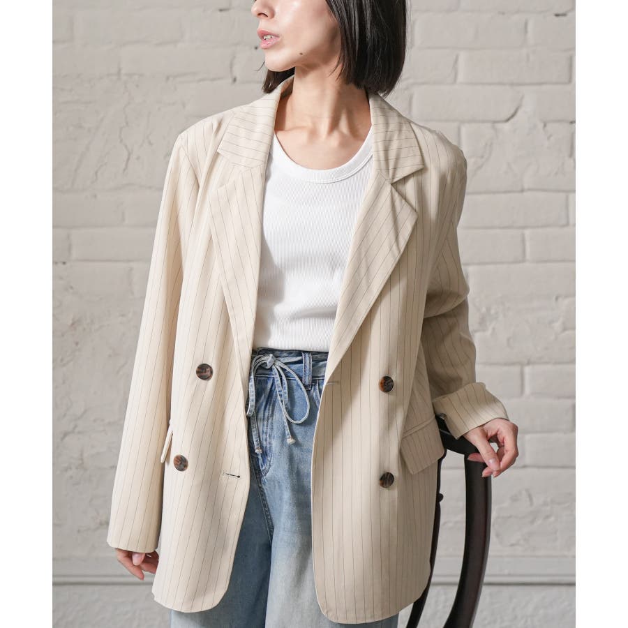 ストライプテーラージャケット レディース ダブルボタン