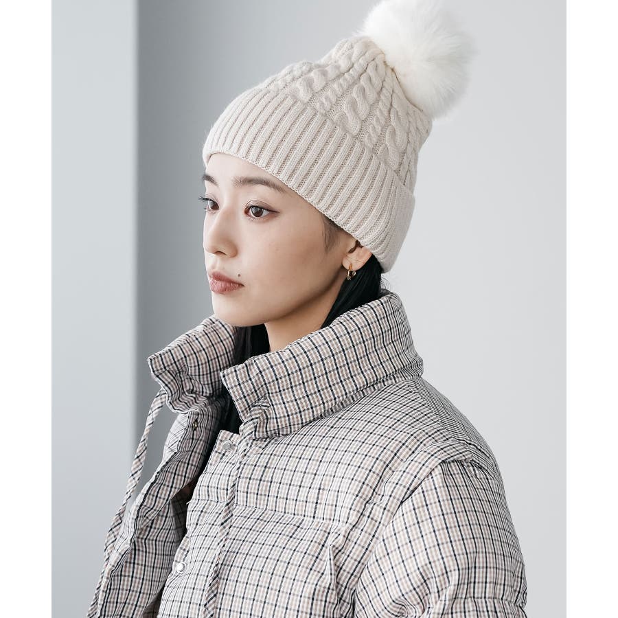 ファー取り外しケーブルニットキャップ ニット帽 ラビットファー