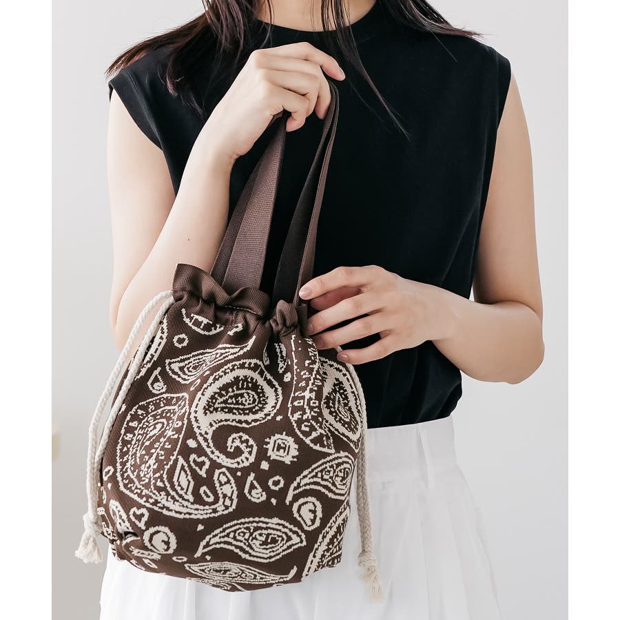 バンダナ巾着バッグ ハンドバッグ ニットジャガード