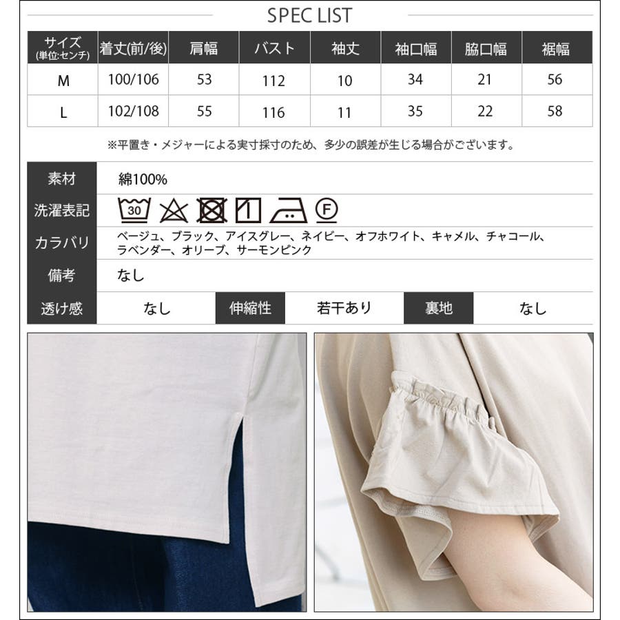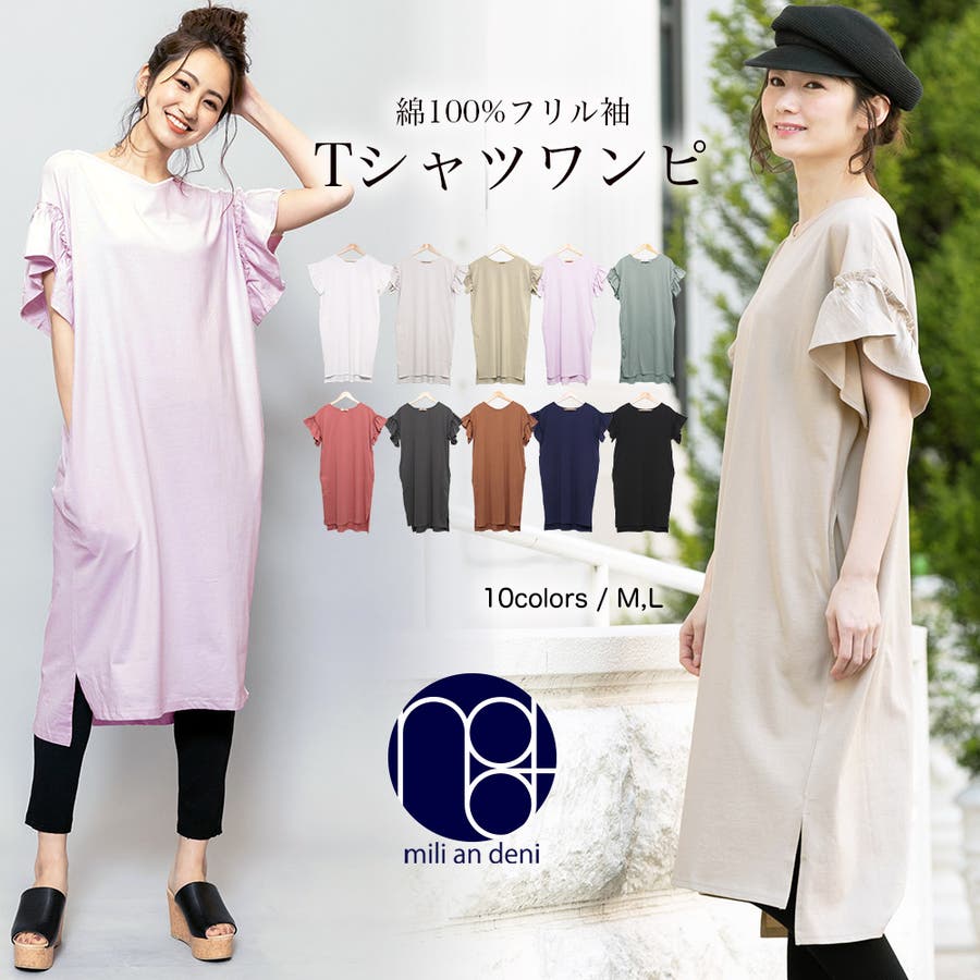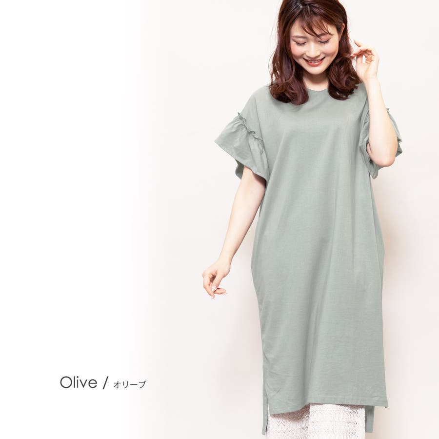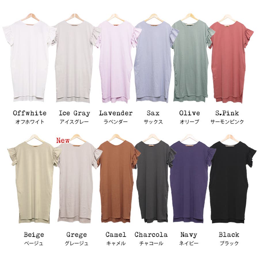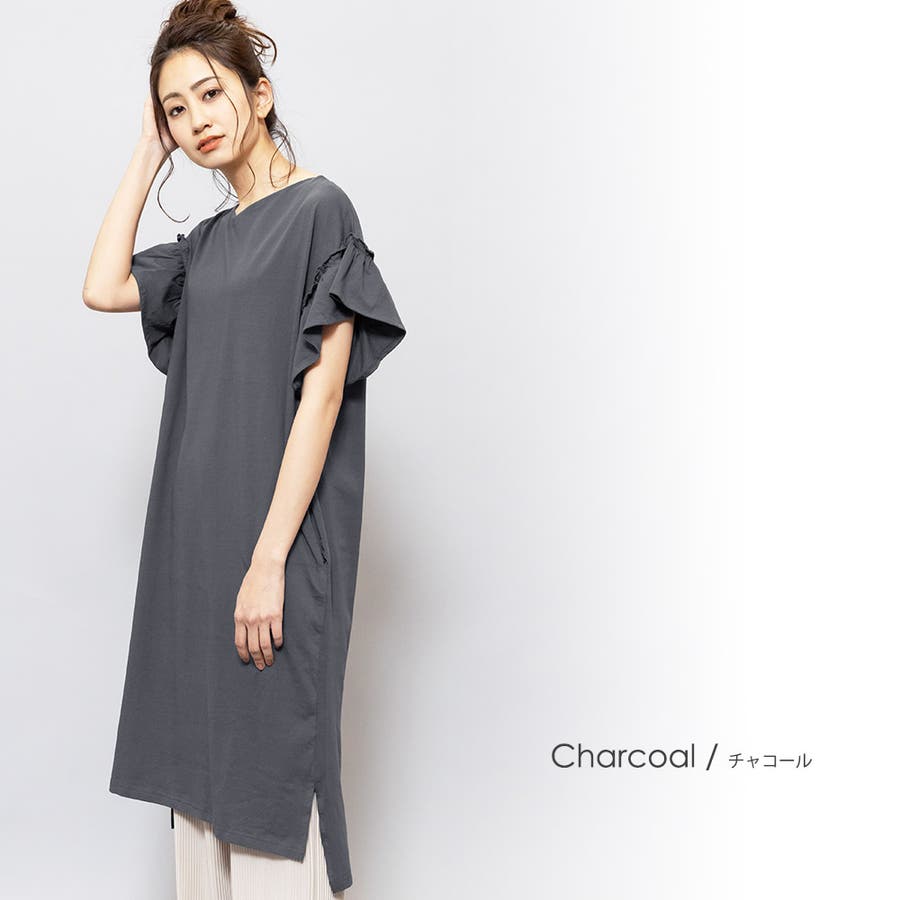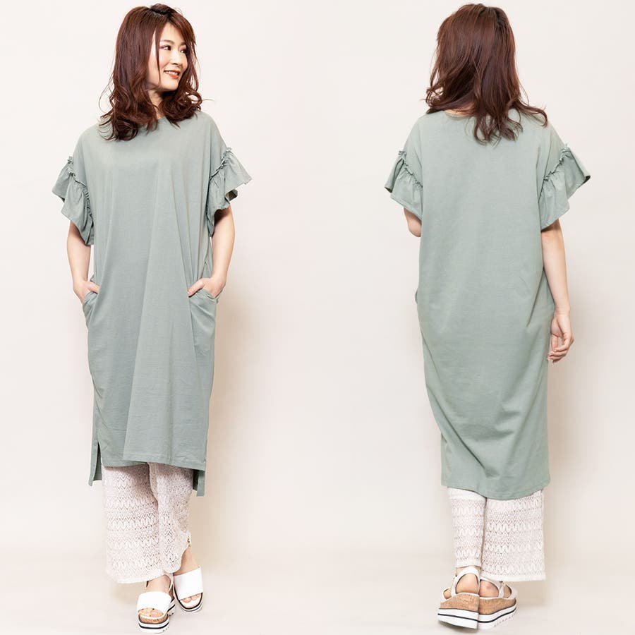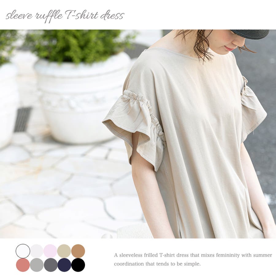 商品名:綿100%袖フリルTシャツワンピース