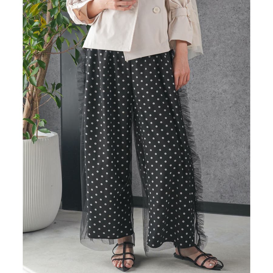 レディース パンツ ドットサイドチュールパンツ