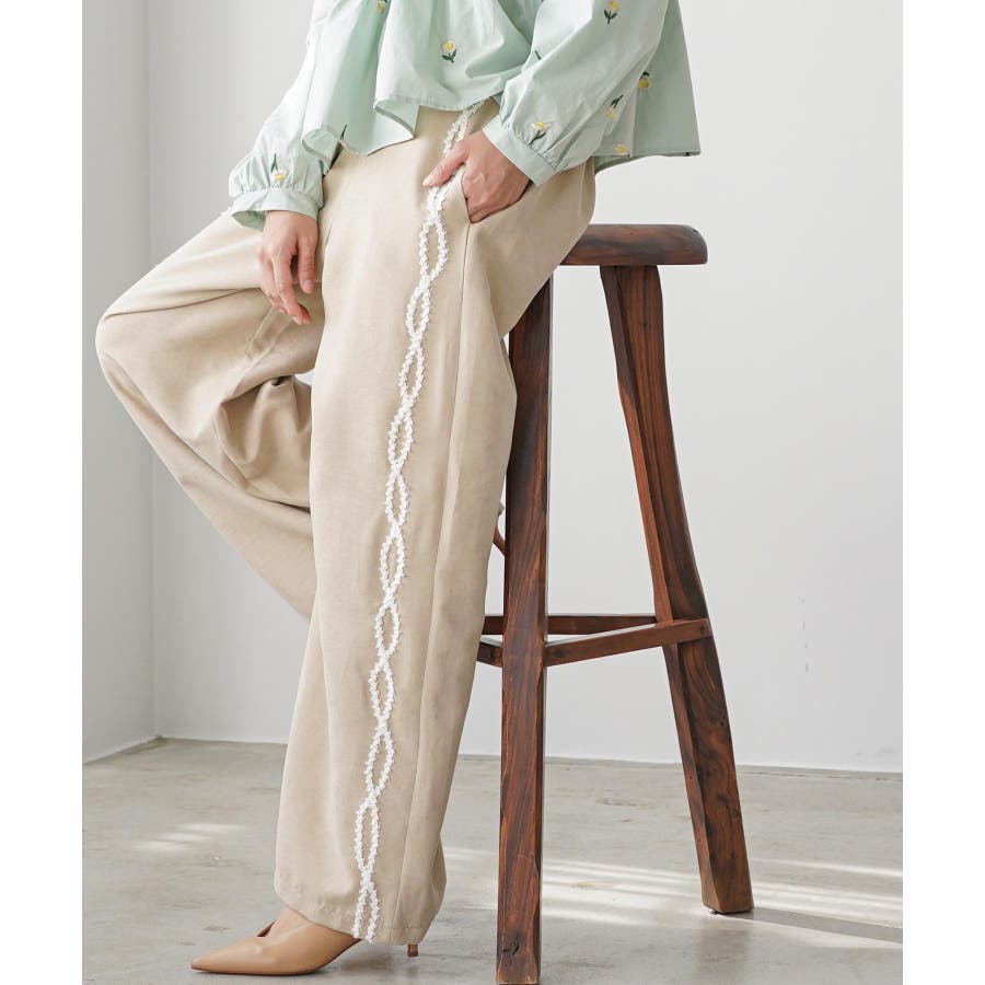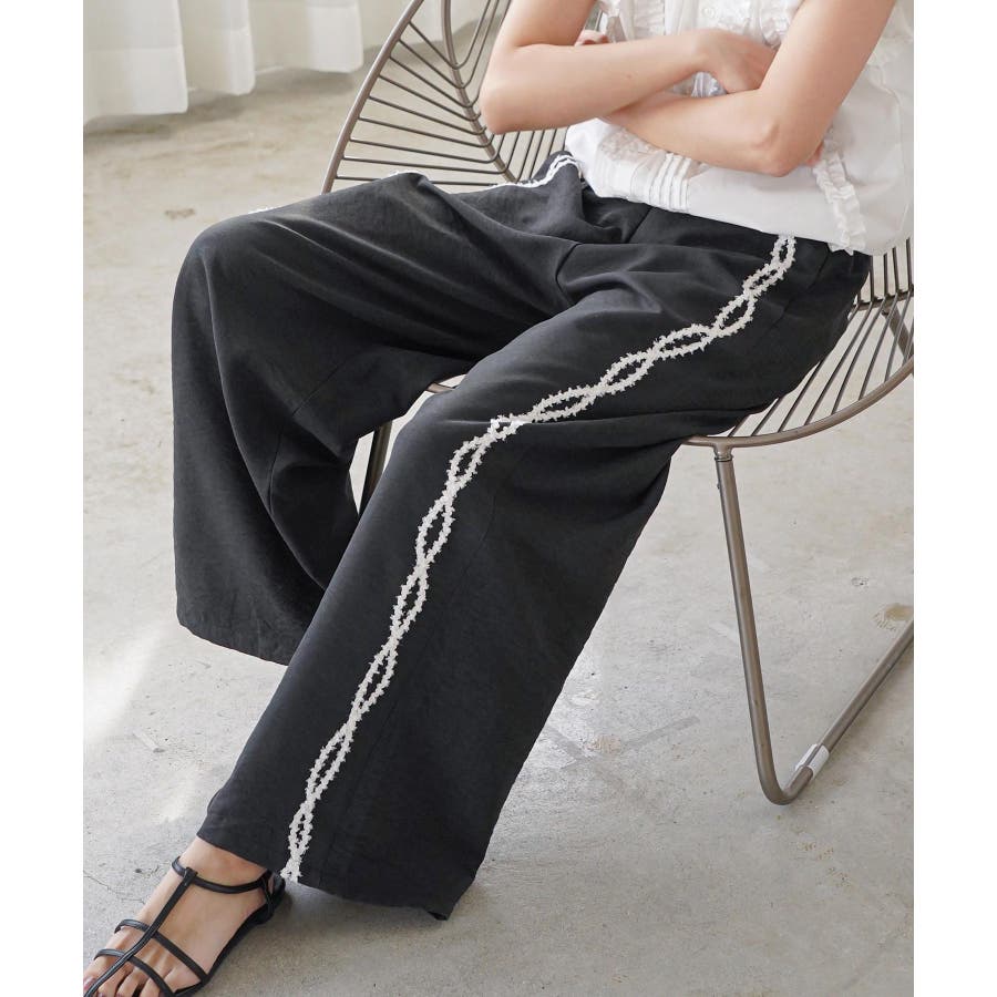 ワイドパンツ レディース サイド刺繍テープパンツ
