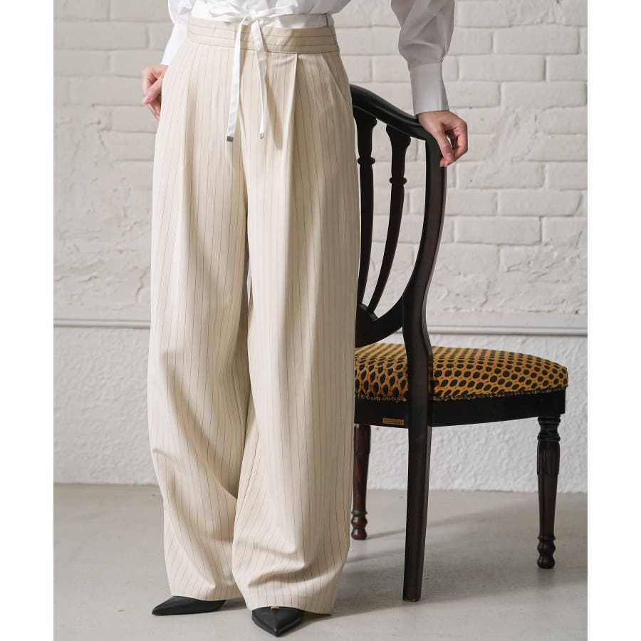 ストライプレイヤード風パンツ ワイドパンツ レディース