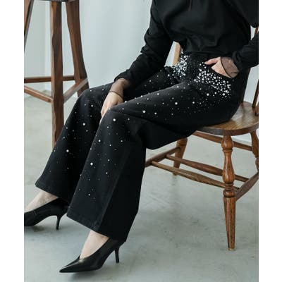 パール付き デニムパンツ レディース