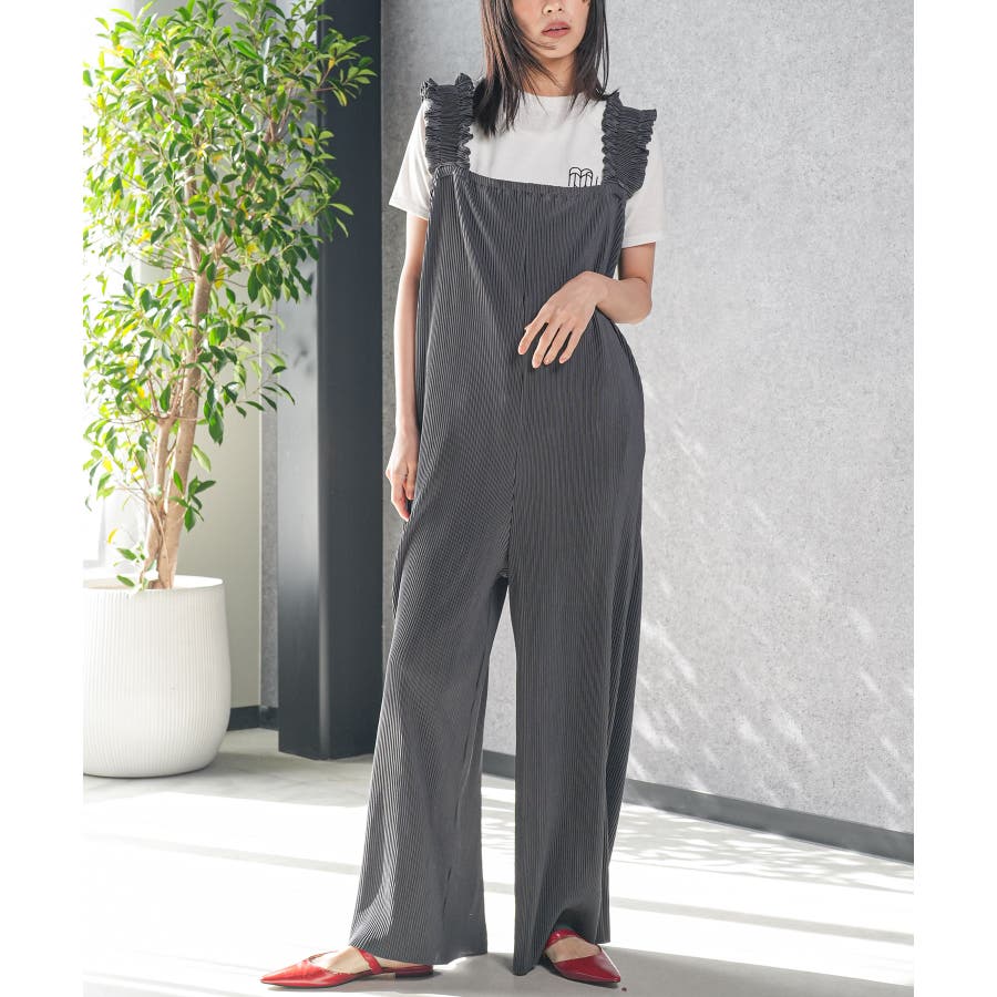 カットプリーツオールインワン ショルダーフリル 着丈調整