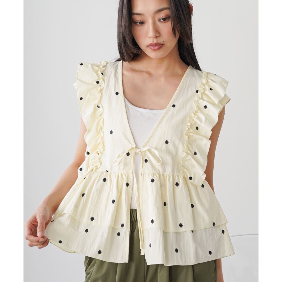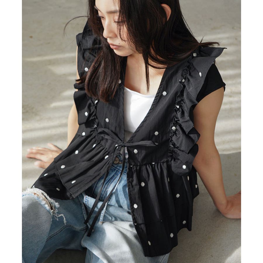 ドット刺繍 フリルベスト レディース