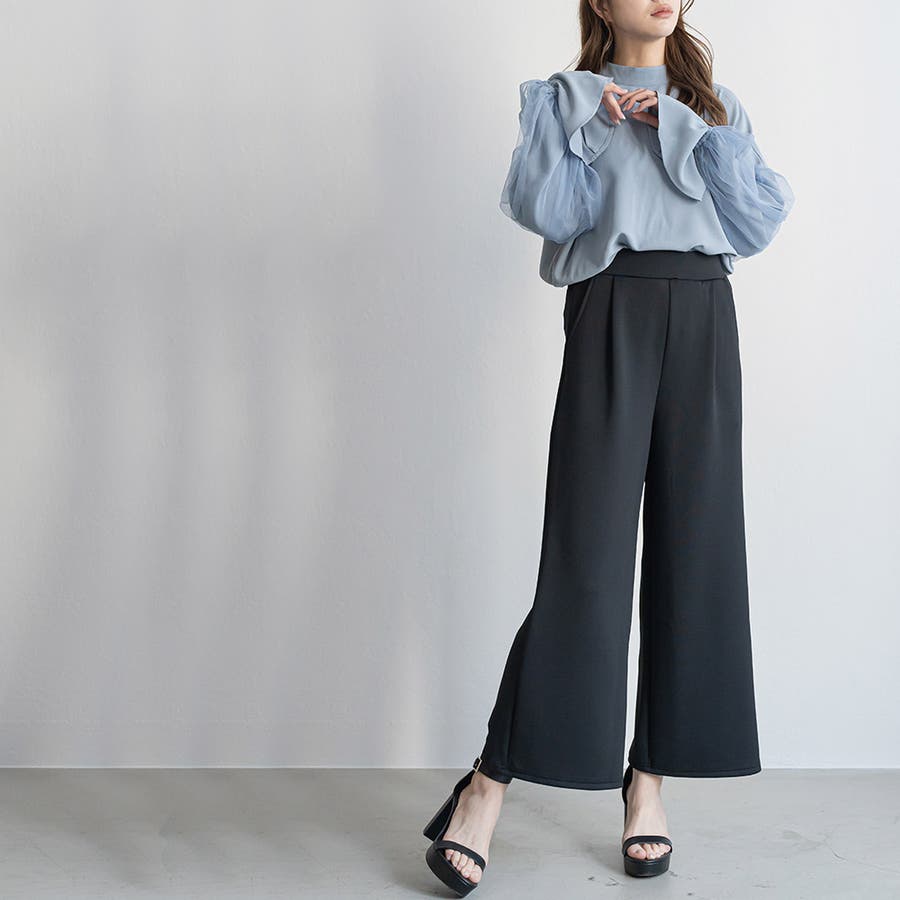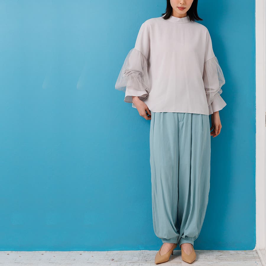 カバースリーブハイネックブラウス チュールスリーブ ハイネック