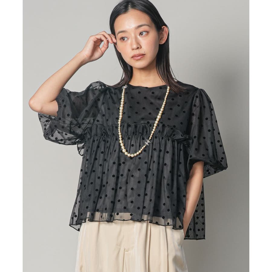 商品名:フロッキードットバルーンスリーブフリルブラウス