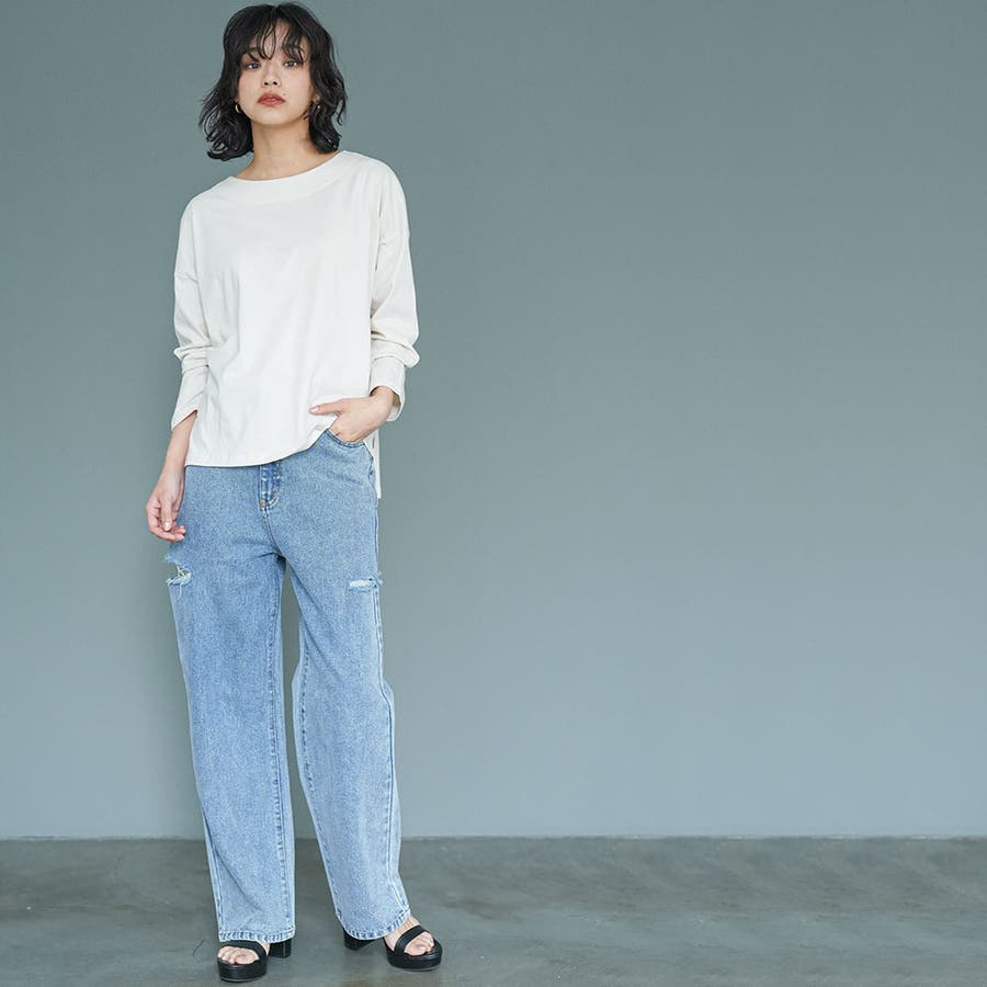 ドロップショルダーロンTシャツ Tシャツ サイドスリット