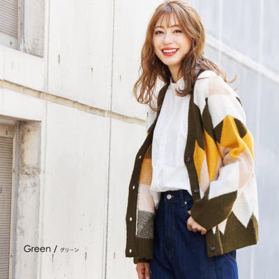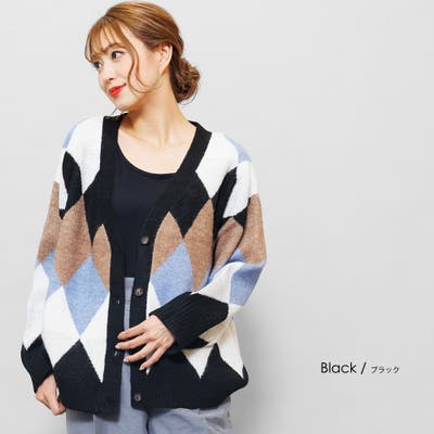マルチアーガイルオーバーカーディガン Vネック ドロップショルダー
