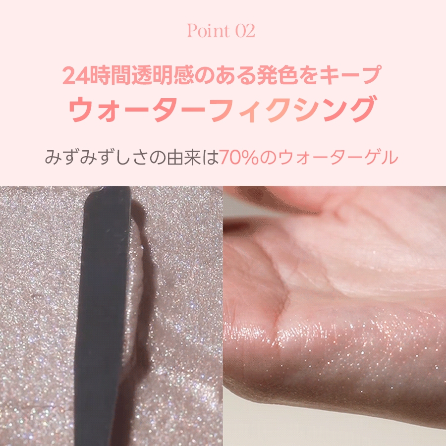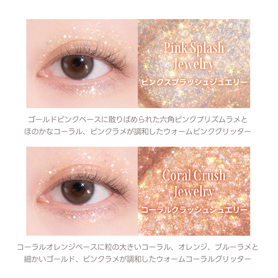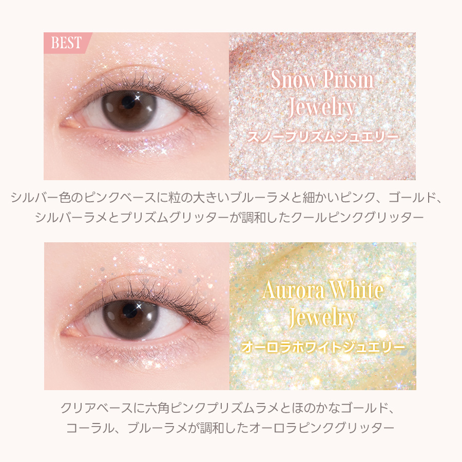 普段のメイクにワンポイント重ね付けするだけでみずみずしい透明感を最大限引き出します。大人女子でも挑戦しやすいカラー展開と、派手すぎないラメ感とさりげないホログラムで、普段使いも。