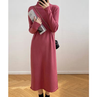 きれいめワンピース セーターワンピース 無地リブワンピ韓国